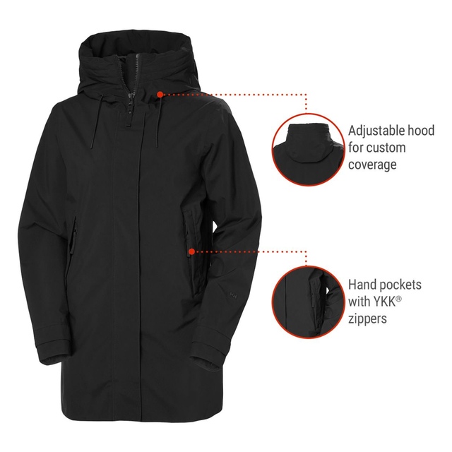 The Helly Hansen Women's Victoria Medium Rain Coat is durably crafted with HELLY TECH® PERFORMANCE technology. Each waterproof, breathable and windproof jacket features a sleek, feminine silhouette that's perfect for city weather. This quality Helly Hansen rain coat includes a high collar, adjustable hood, and subtle metal logo detail, providing both style and functionality.