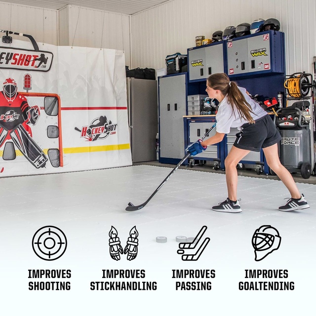 The HockeyShot Dryland Allstar Tiles offer a versatile training solution for players practicing at home or during warmer months. Designed for easy setup, these tiles provide an ideal surface for skill development, allowing players to create a customized flat surface training space that fits their needs.