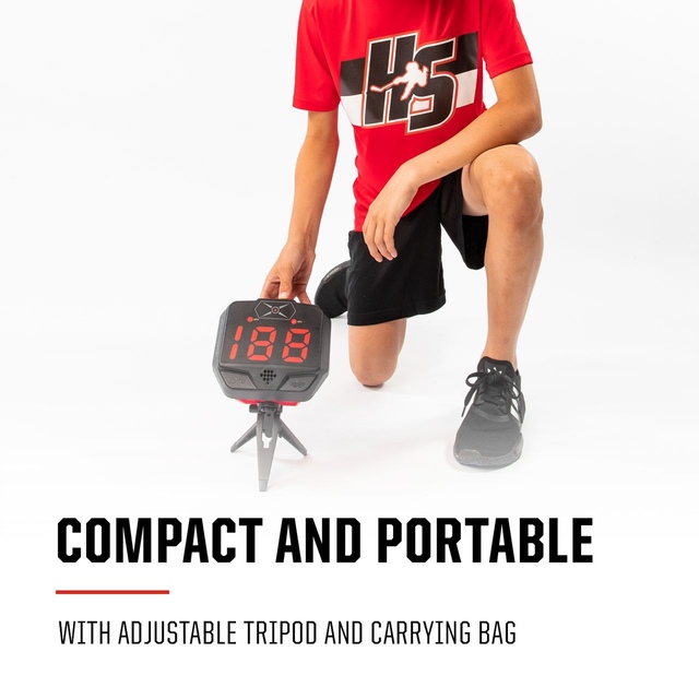 Adjustable tripod for set-up anywhere and a more accurate speed reading.