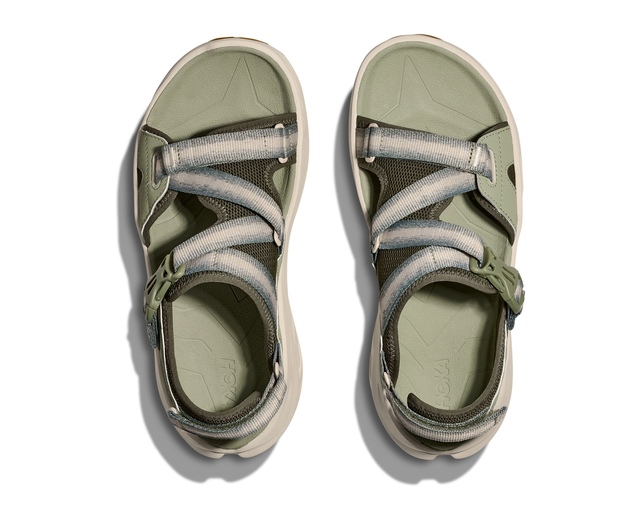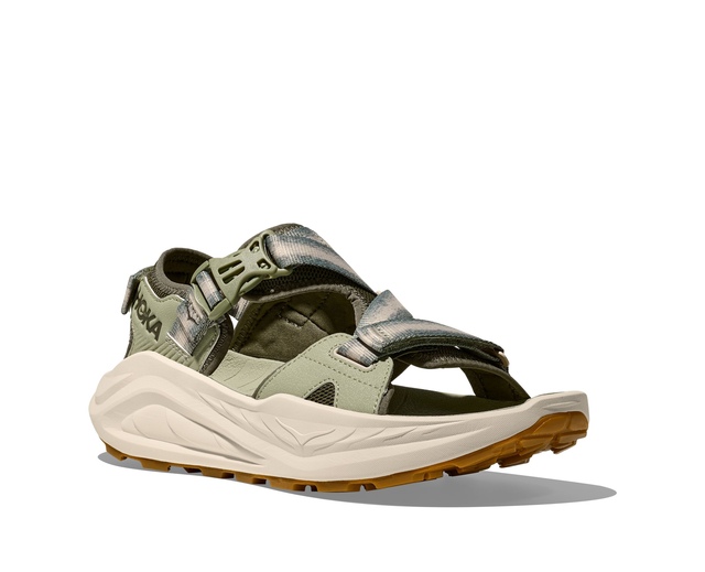 The HOKA Infiniti Hike TC Sandals are eco-friendly and made with recycled materials like rPET webbing and Ariaprene foam. The Vibram Megagrip rubber outsole with 3.5mm lugs provides excellent traction on hikes. These hiking sandals feature an adjustable W-strap design that provides a custom fit, while flex grooves and a metatarsal bar improve flexibility.