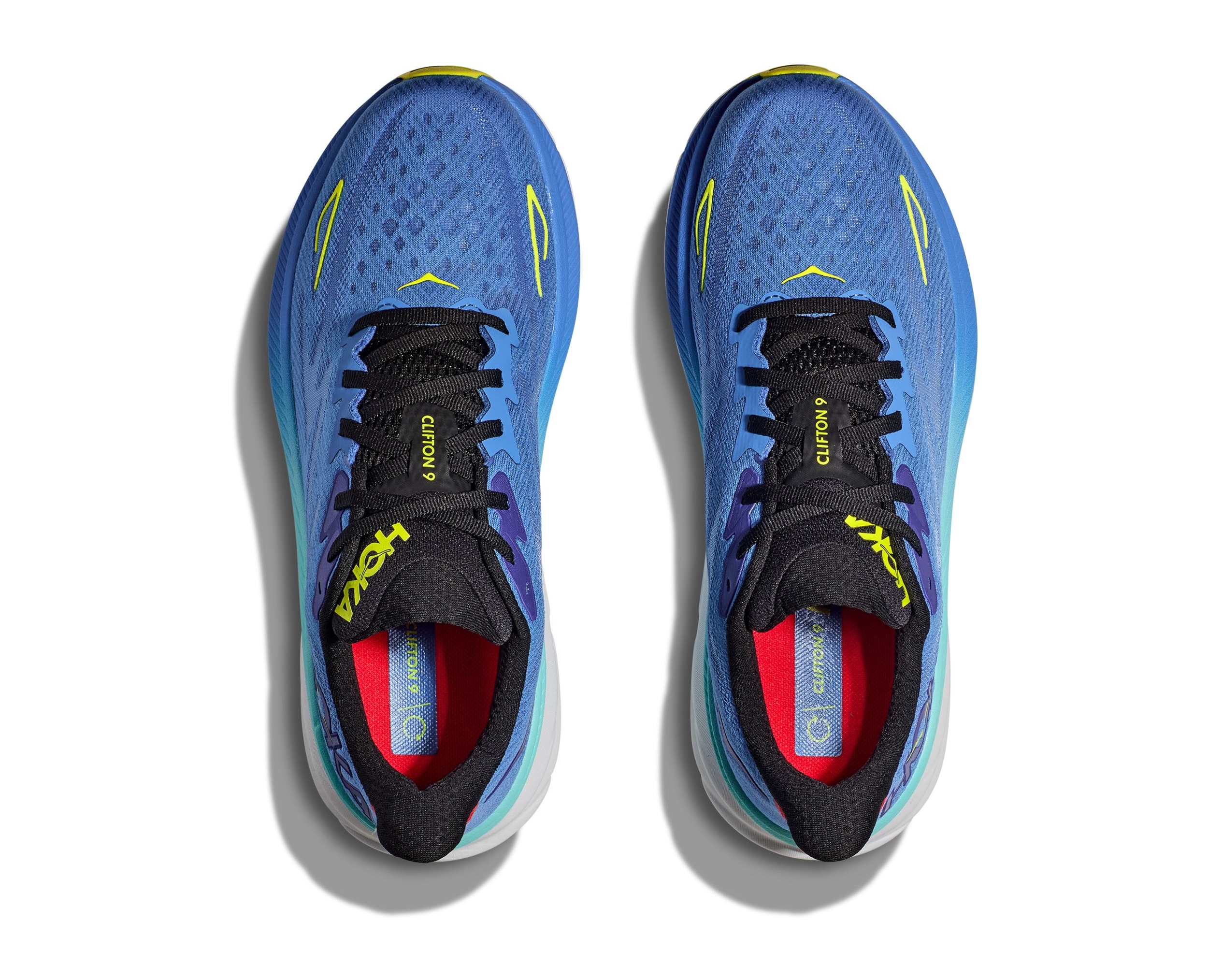The Clifton 9 running shoe from HOKA provides all the comfort and support you need for road running, fitness workouts and recovery walks. The breathable engineered knit upper with recycled content mesh and polyester laces allows your foot to move naturally while remaining secure. The extended heel pull makes these shoes easy to slip into, while the moulded EVA sockliner cradles your foot. The Meta Rocker profile and inherently stable design reduce impact forces to give your joints a break, made possible by the resilient recycled content CMEVA midsole. Plus, the durabrasion rubber outsole provides grip and durability for all your activities. With a secure yet flexible fit and cushioned comfort from heel to toe, these neutral stability running shoes from HOKA will have you cruising along in comfort.