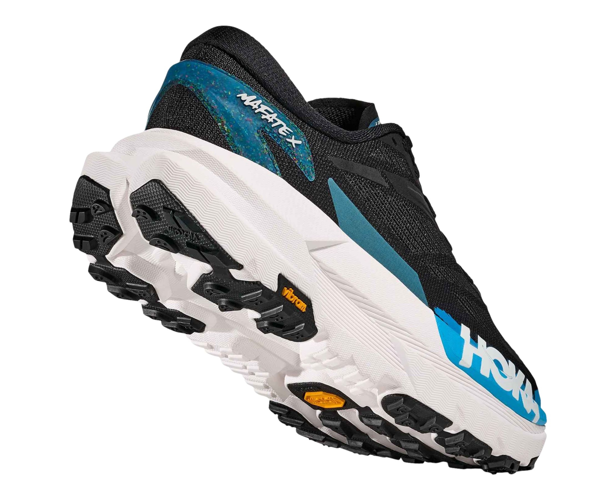 Mafate X delivers supreme plushness with a dual-density, premium foam chassis, PEBA top layer, and a pop of propulsion thanks to HOKA's forked carbon fibre plate