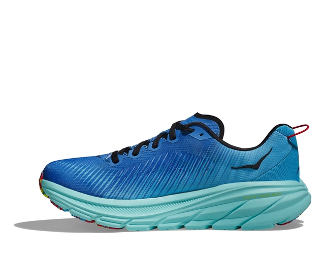 The HOKA Men's Rincon 3 Running Shoes are designed for road running. These shoes feature an engineered mesh upper for breathability, a CMEVA midsole for lightweight comfort and an early stage meta-rocker for smooth transitions. Zonal rubber placement reduces weight, without sacrificing performance, ensuring these HOKA runners provide comfort, support and control with every step.