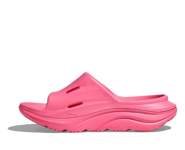 The unisex HOKA Ora Recovery Slide 3 Sandals deliver superior comfort and support after your workout. Their lightweight foam construction cushions every step for walking recovery. The solid rubber outsole enhances durability and traction, whether on gym floors or sidewalks. The toe strap is anatomically designed for a secure fit, while the soft jersey lining cradles your foot. A deep heel cup maximizes cushion and stability. These sandals allow your feet to recover in plush comfort after runs or gym sessions.