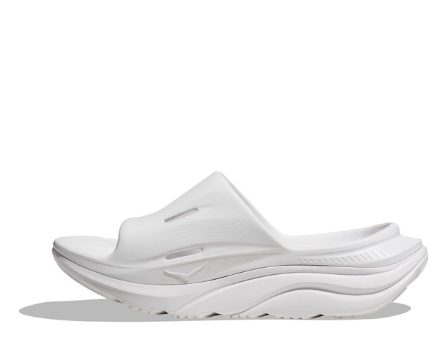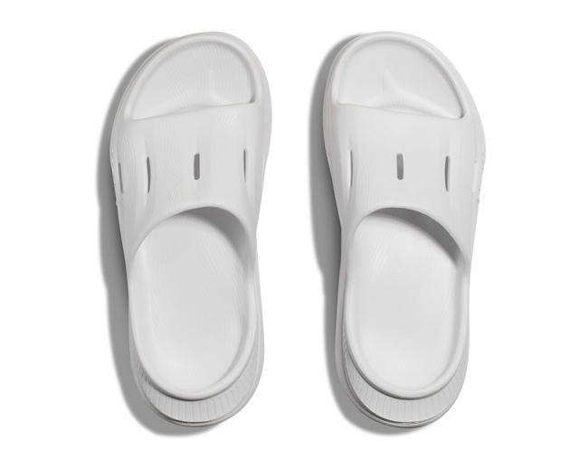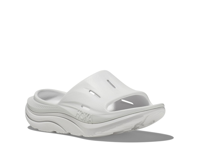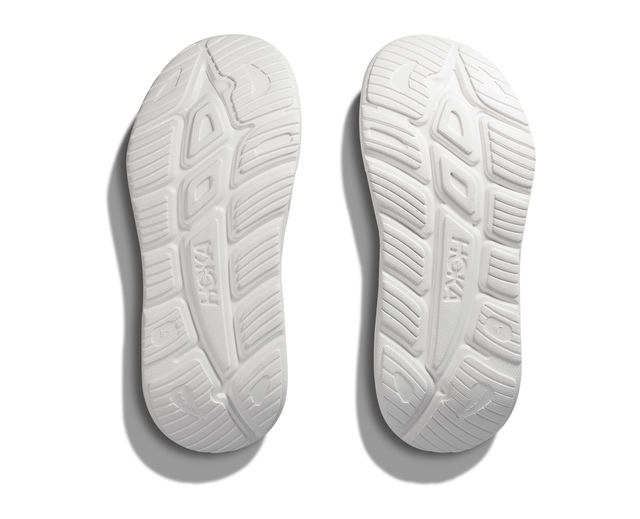 The unisex HOKA Ora Recovery Slide 3 Sandals deliver superior comfort and support after your workout. Their lightweight foam construction cushions every step for walking recovery. The solid rubber outsole enhances durability and traction, whether on gym floors or sidewalks. The toe strap is anatomically designed for a secure fit, while the soft jersey lining cradles your foot. A deep heel cup maximizes cushion and stability. These sandals allow your feet to recover in plush comfort after runs or gym sessions.
