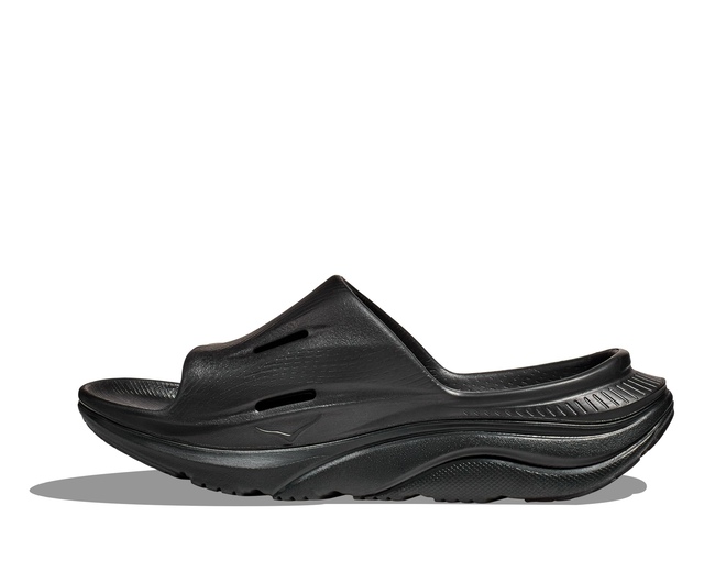 The HOKA Unisex ORA Recovery Slides are designed for optimal comfort during recovery and walking. Providing breathability, the slides feature a dual-density Hubble geometry upper with ventilated airflow design. These HOKA sandals have a rubberized EVA outsole that provides moderate stability and plush cushioning underfoot.