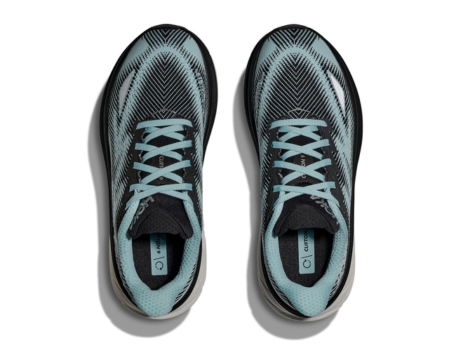 The HOKA Women's Clifton 9 GORE-TEX Running Shoes provide waterproof protection for road running. The shoes feature GORE-TEX Invisible Fit technology, and their knit and recycled polyester mesh uppers keep feet dry. An extended heel pull allows easy entry, and the CMEVA midsole and Meta-Rocker geometry provide cushioning and stable geometry for a balanced ride. The rubber outsole of these running shoes improves grip, and the mesh tongue and EVA sockliner promote comfort and support.