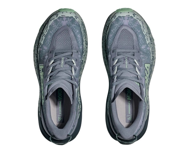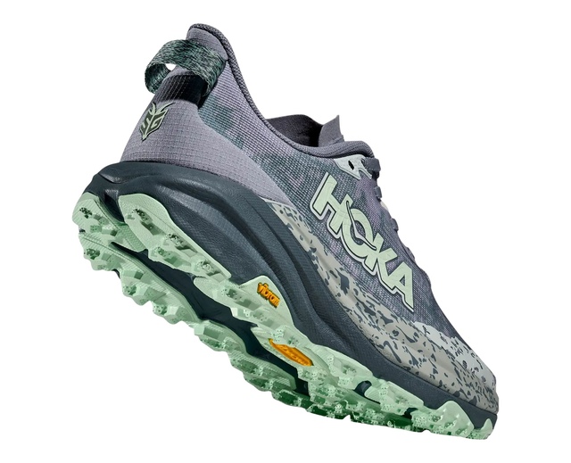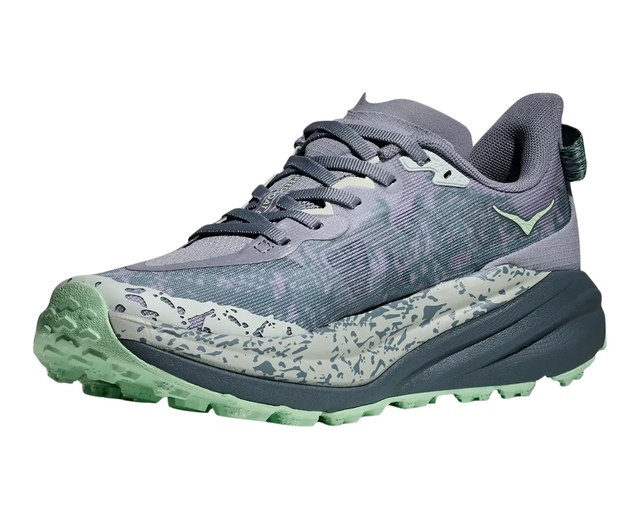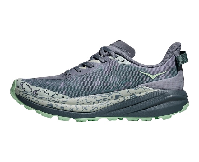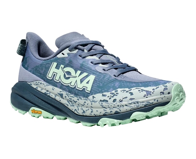 The HOKA Women's Speedgoat 6 Trail Running Shoes are designed for rugged outdoor adventures, offering stability, traction, and responsive cushioning. With dynamic mesh and recycled polyester laces, these shoes ensure breathability during long runs or hikes. The cushioned foam and 5mm lugs deliver grip on uneven terrain, while the gusseted tongue and molded EVA sockliner provide a customized fit, reducing irritation.