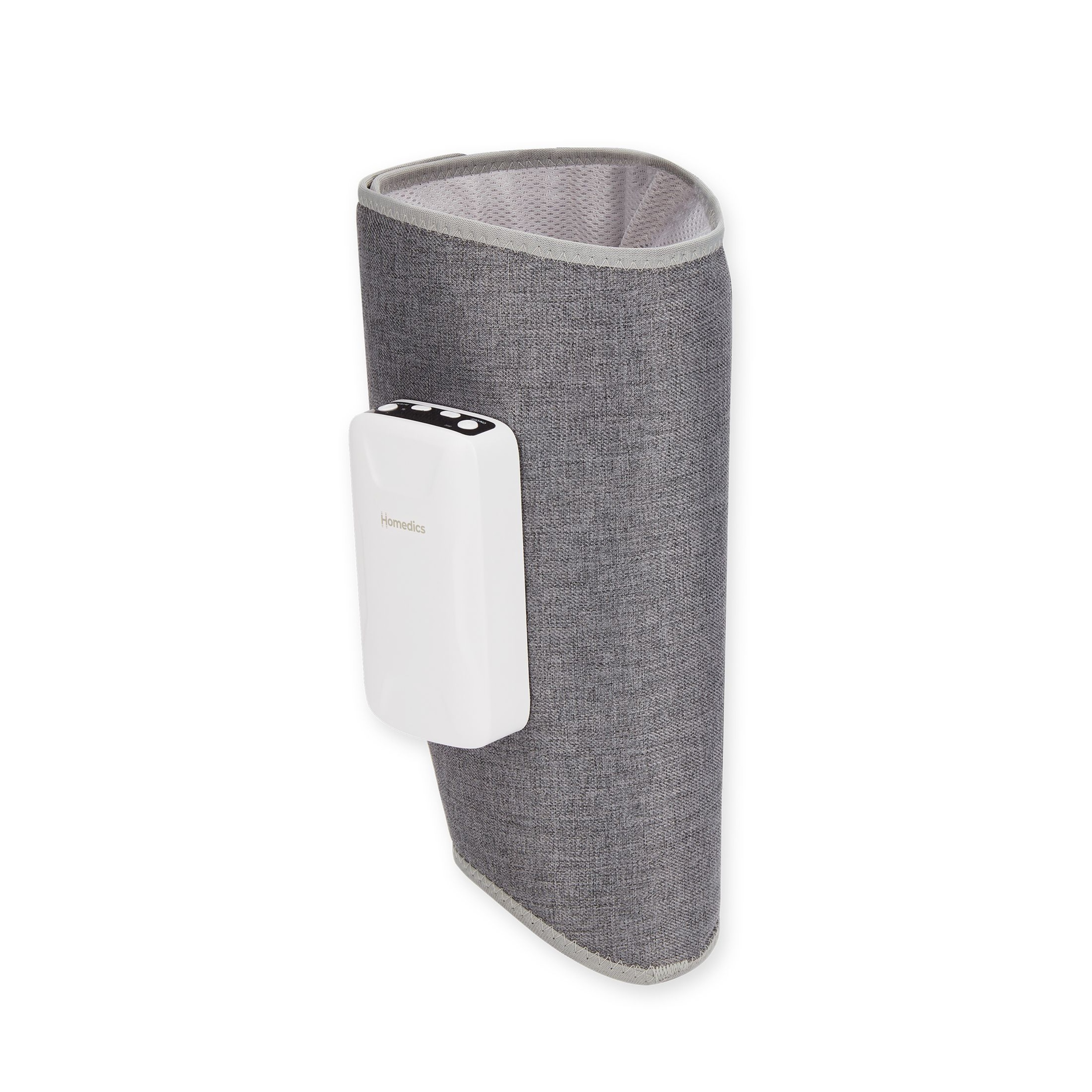 Say goodbye to sore, tired calves and hello to relief. The Homedics Real Relief Compression Calf Massager squeezes and kneads your lower legs with three different compression programs to soothe aches and pains. The mesh fabric and wireless design make it easy to use anytime, anywhere, while the ultra-quiet compression and soothing heat up to three levels help you relax and unwind. Two active compression zones target calf muscles after workouts or long days on your feet. Simply slip your feet into the sleeves, select your desired compression and heat settings, and let this cordless calf massager go to work—the USB charging cable means you'll always be ready for an on-the-go massage.