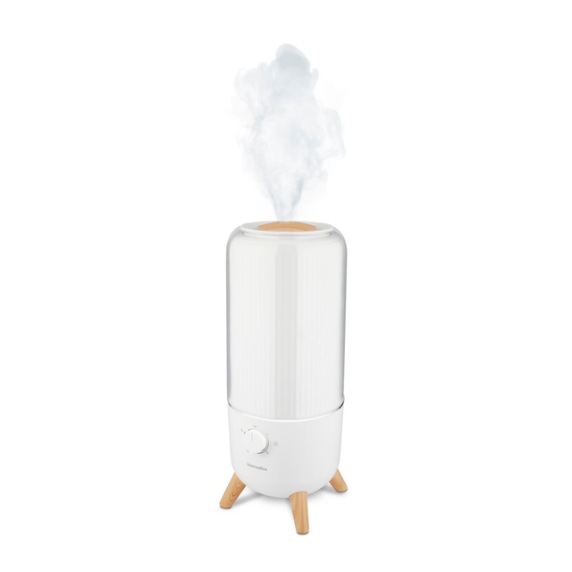 Visibly cool, totally clean! The HoMedics® TotalComfort® Deluxe Ultrasonic Humidifier disperses a cool mist you can see with 360-degree coverage in large rooms up to 400 sq. ft. The programmable humidistat makes it easy to set your desired humidity level. The top-fill 10.97-gallon tank features up to 45 hours of runtime with automatic shutoff for up to 12 hours, plus 3 mist settings. Clean Tank Technology helps protects the tank from mold and mildew while the included essential oil tray offers relaxing aromatherapy.