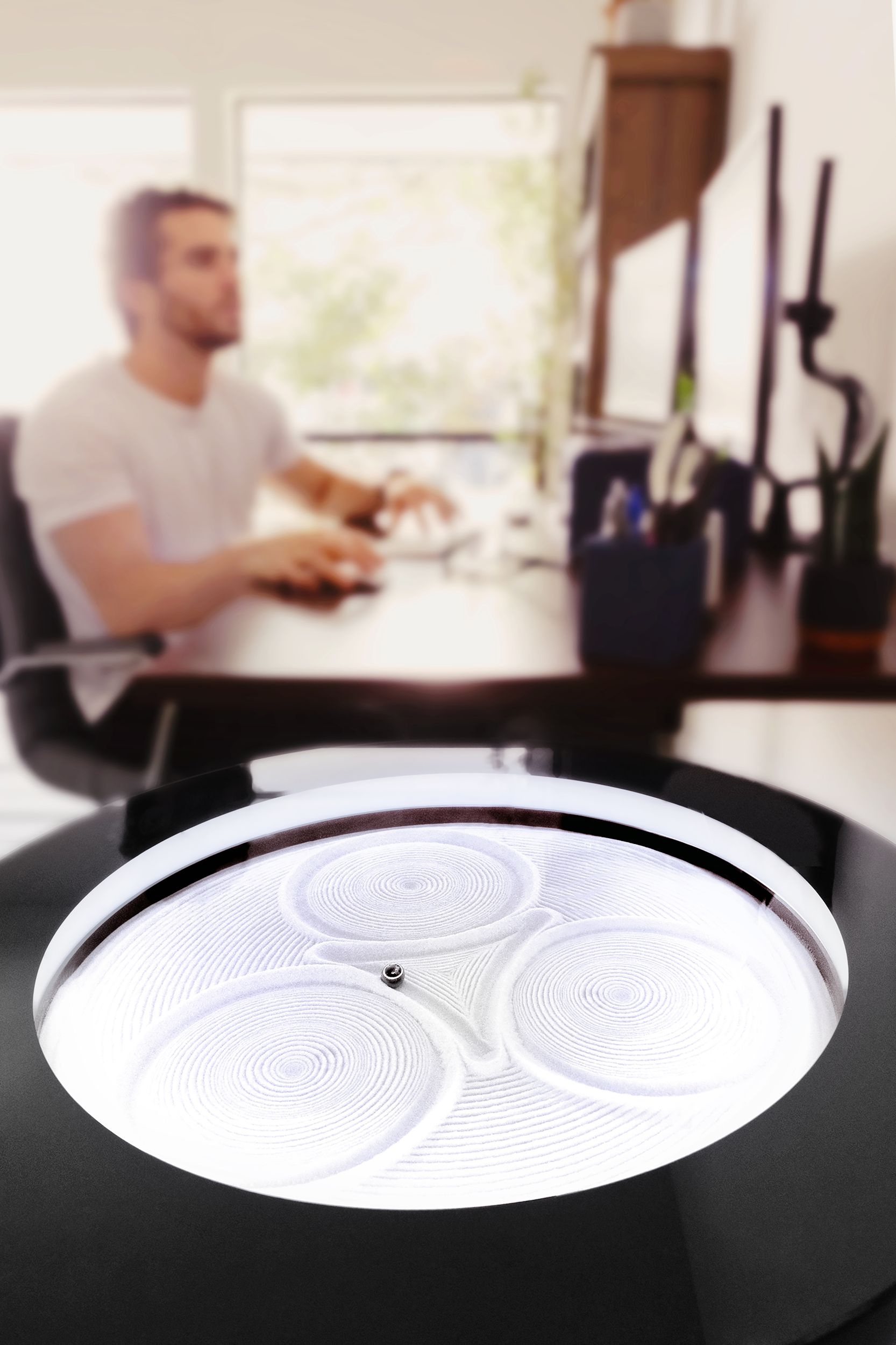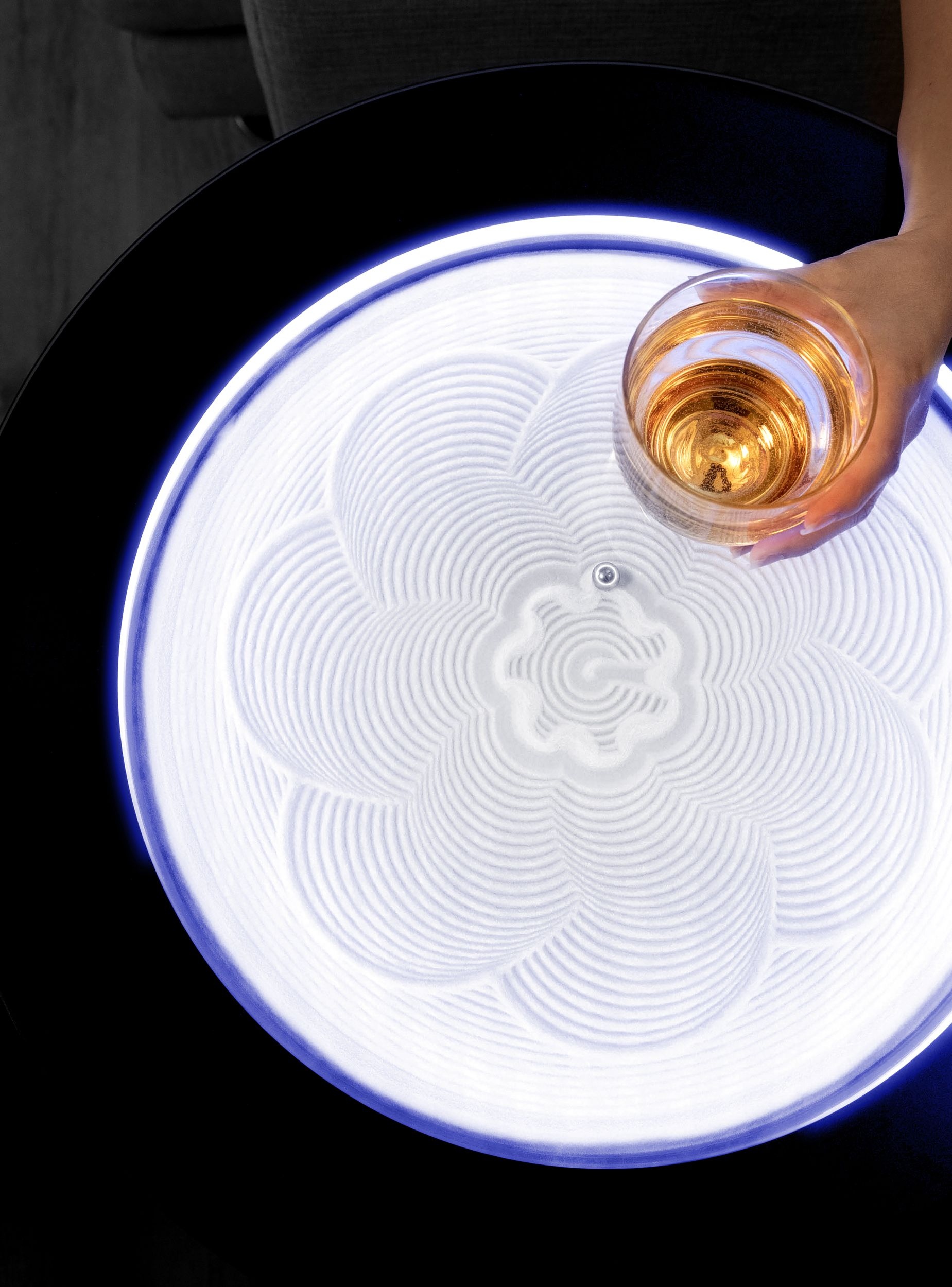Create relaxing sand designs with the HoMedicsDrift Sandscape kinetic sand table. Connect to the HoMedicsDrift app via Bluetooth to plan unique patterns, and the metal sphere will start to draw them in the sand. This small table is perfectly sized for desks and side tables, allowing you to enjoy the calming view while you work or rest.