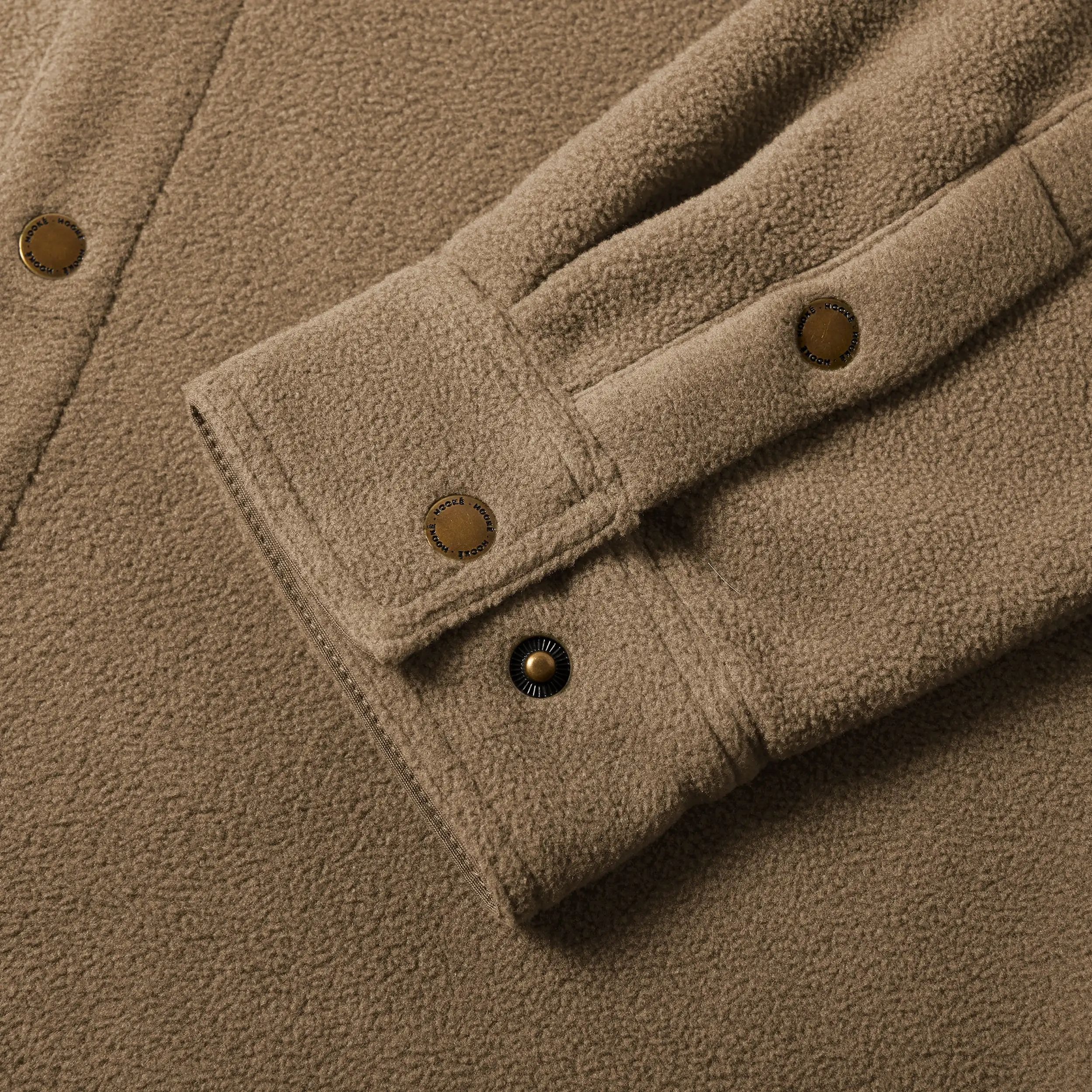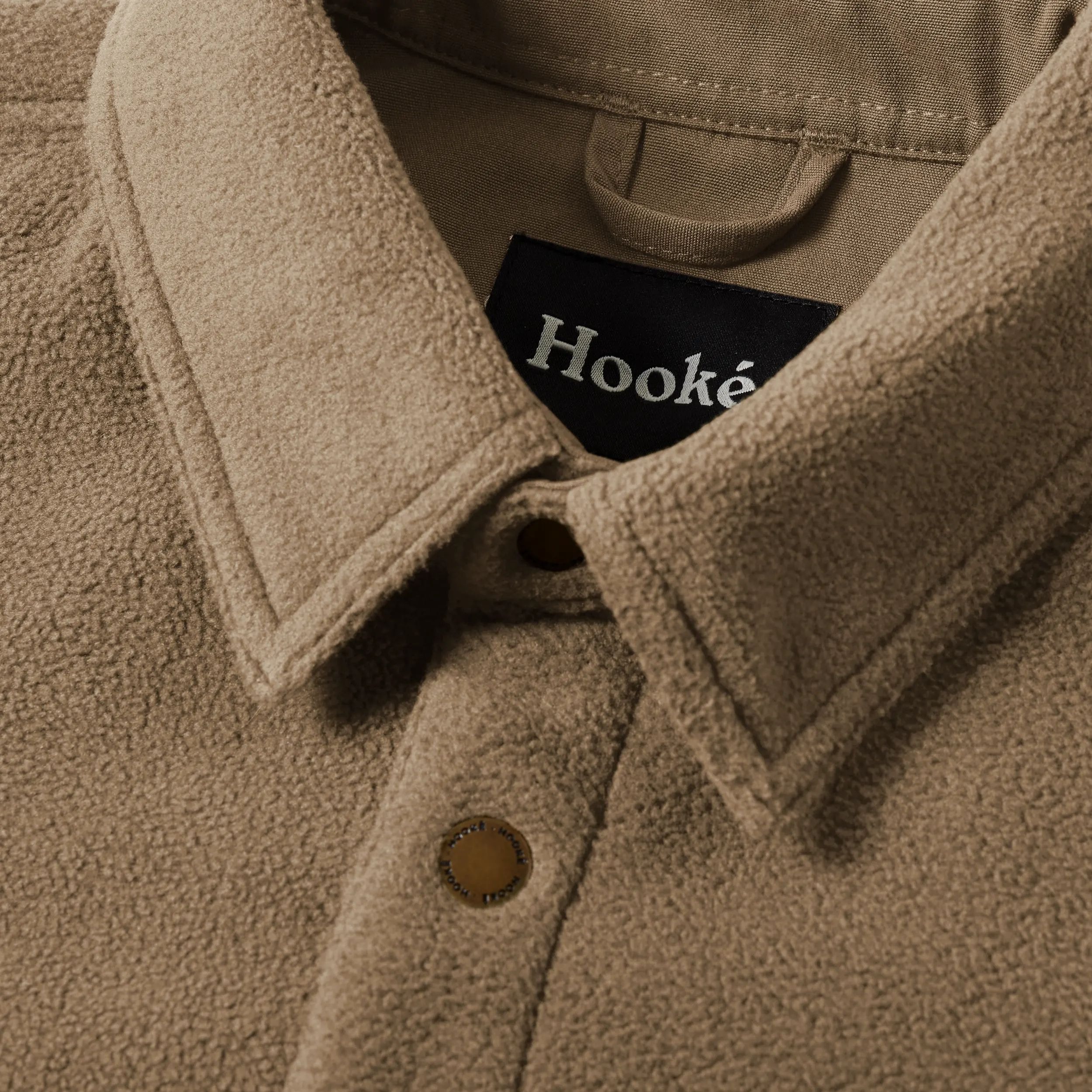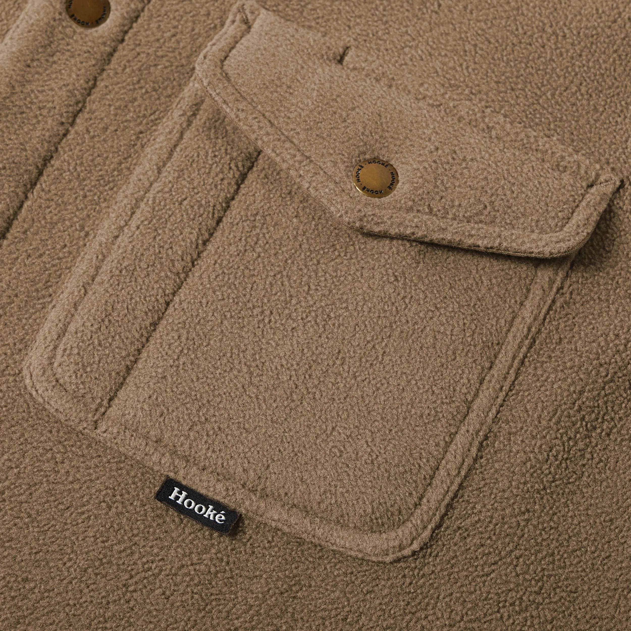 Stay warm and stylish with the Hooke Men's Polar Fleece Overshirt. Built from 100% recycled polyester fleece, it offers soft comfort and durability. Featuring chest pockets with flap and button closures, plus adjustable cuffs for a personalized fit, this overshirt is ideal for outdoor adventures or cozy evenings.