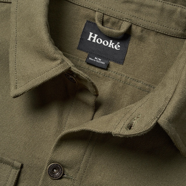 The Hooke Men's Trucker Work Jacket seamlessly combines versatility and durability in a classic, timeless design. Crafted from a robust 12 oz canvas composed of 65% recycled polyester and 35% cotton, this jacket offers the perfect balance of toughness and flexibility. Certified to meet GRS and Oeko-Tex® standard 100 standards, this jacket ensures sustainability and safety.