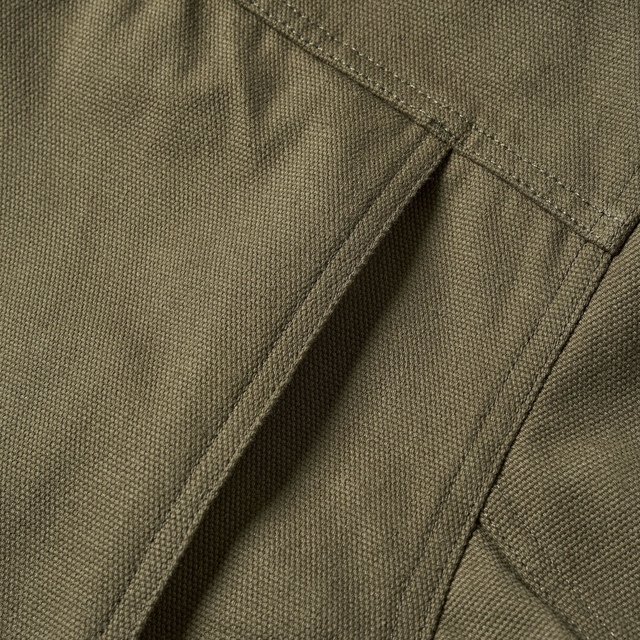 12 oz canvas fabric composed of 65% recycled polyester and 35% cotton for durability and breathability
