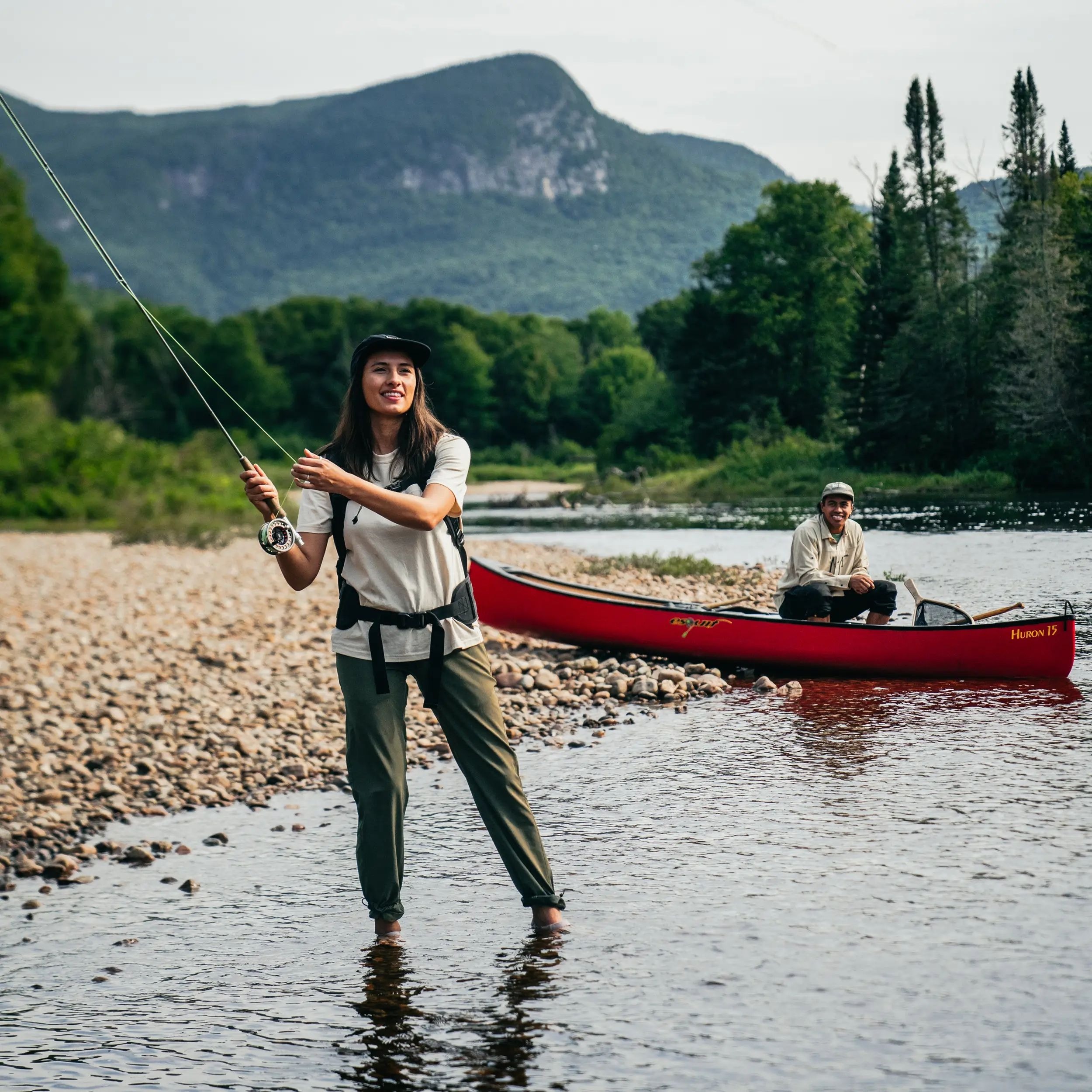 The Hooke Women's Trekking Pants are ideal for hiking, canoe camping, and everyday adventures. Crafted from a blend of recycled nylon and spandex, these pants offer durability, stretch, and quick-dry performance. With reinforced knees and a gusseted crotch for added comfort, plus zippered thigh pockets for easy access to essentials, they’re designed for both practicality and flexibility.