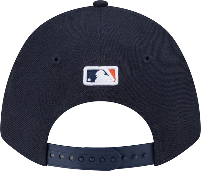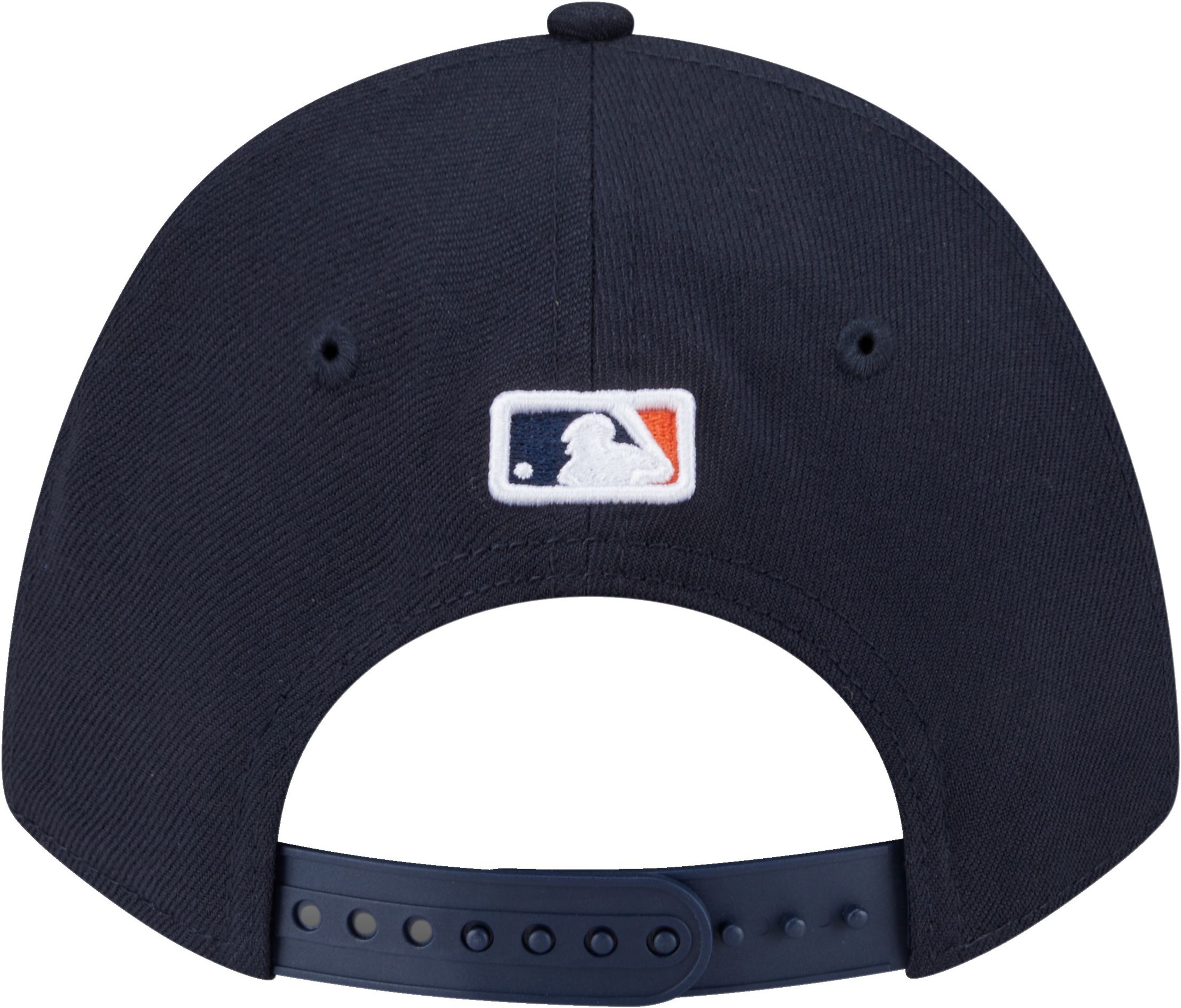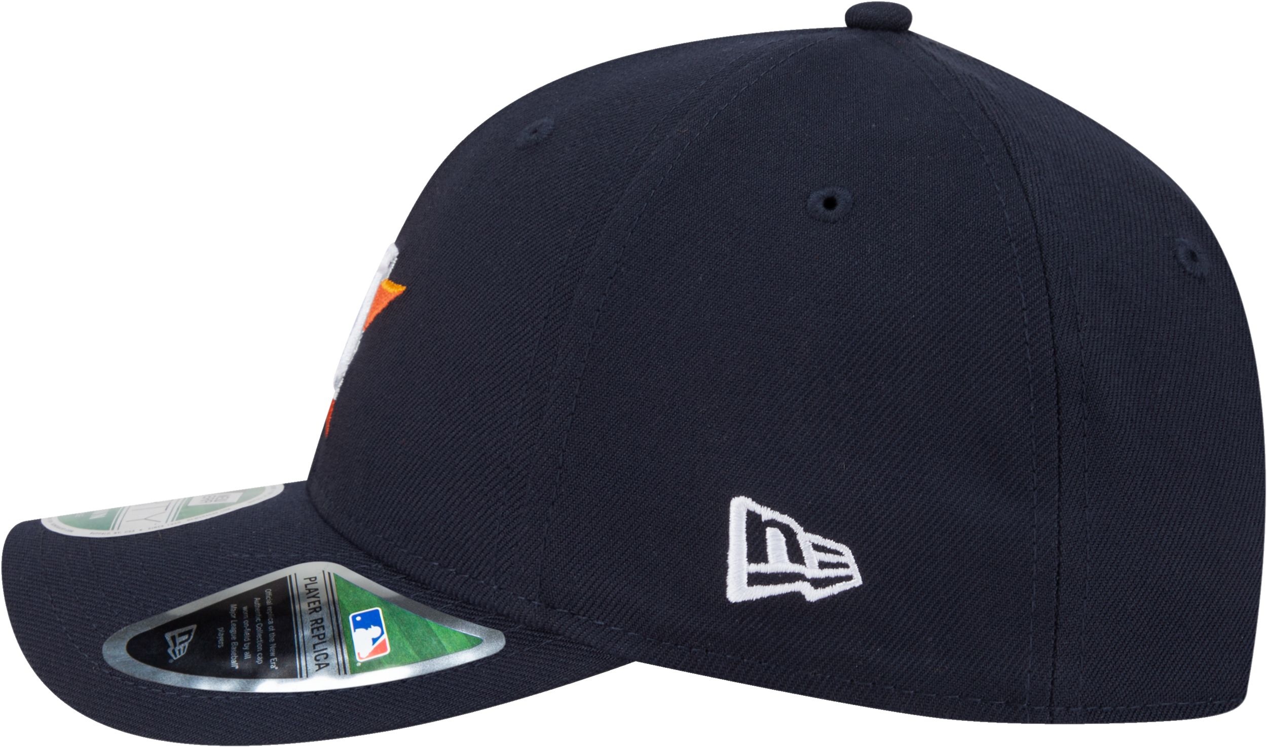 The Houston Astros New Era Player Replica 9FORTY Cap is an updated silhouette with a semi-full shape that more closely replicates the on-field cap. This modern visor is slightly shorter and less curved for minimalistic style. Embroidered Astros logo on the front panels with a matching MLB Batterman logo above a snapback closure at the rear, finished with a black undervisor for a true replica look.
