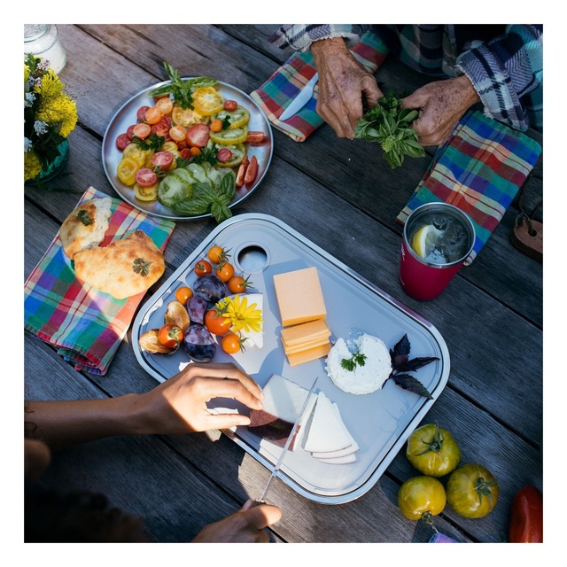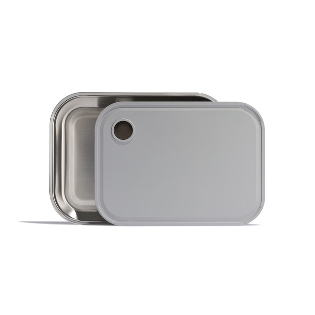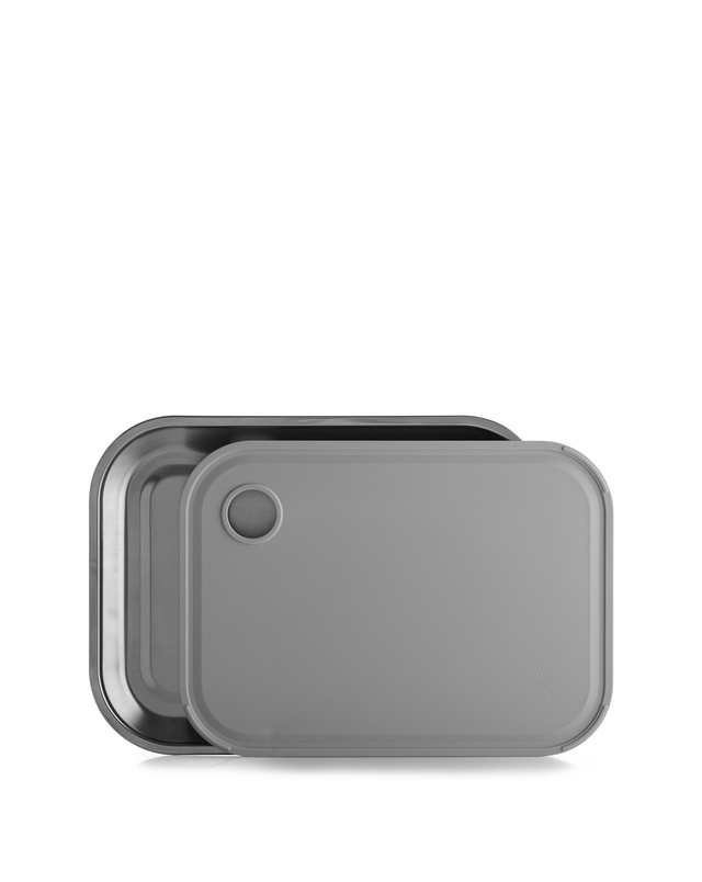 The Hydro Flask Cut and Serve Platter is a 2-in-1 food prep and serving solution. It is made from premium stainless steel and lightweight polypropylene. It features a sturdy cutting board that nests inside a sleek serving platter. A juice-catching groove and thumb hole help in easy lifting. Its slip-resistant Colour Last™ powder coat finish ensures lasting colour. Perfect for indoor or outdoor use, this Hydro Flask Cut and Serve Platter is dishwasher-safe for easy cleaning.
