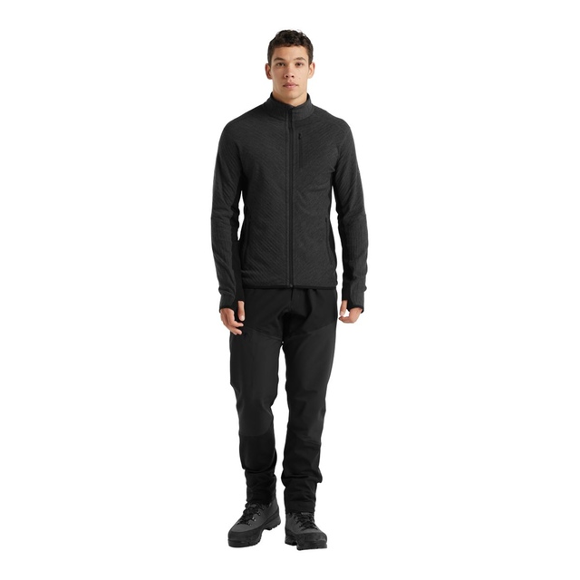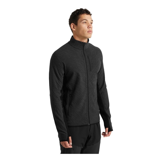 A technical mid layer designed to insulate and breathe during cold, high-output days, the Descender Long Sleeve Zip features 240gm textured RealFleece™, which has a high-loft brushed back with heat-trapping channels to help regulate body temperature. Lighter-weight side panels feature corespun fabric for durability, softness and added breathability. Zippered chest and hand pockets stash small essentials, and flatlock stitching and offset seams provide total comfort. Superfine merino fibers are brushed to create icebreaker RealFleece™, a natural fleece that warms and breathes next to your skin. Inspired by nature, icebreaker harnesses the performance qualities of natural fibers to offer an alternative to clothing based on petrochemical synthetics.