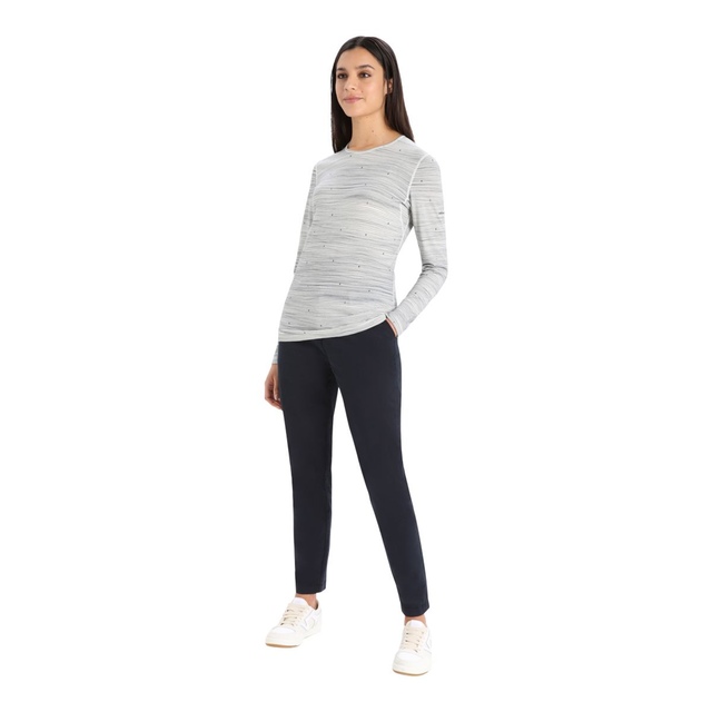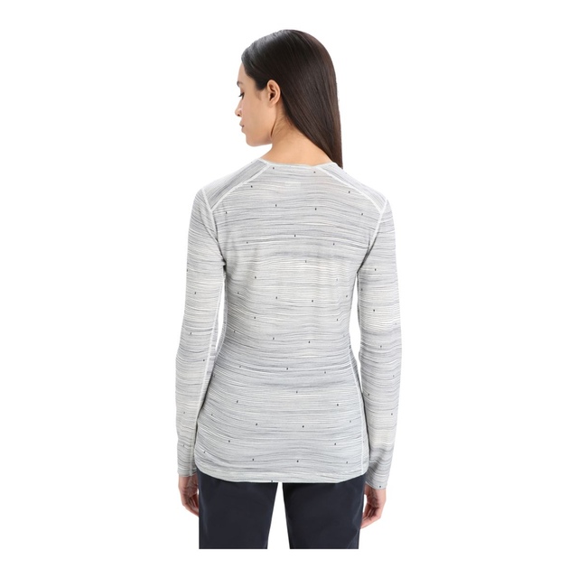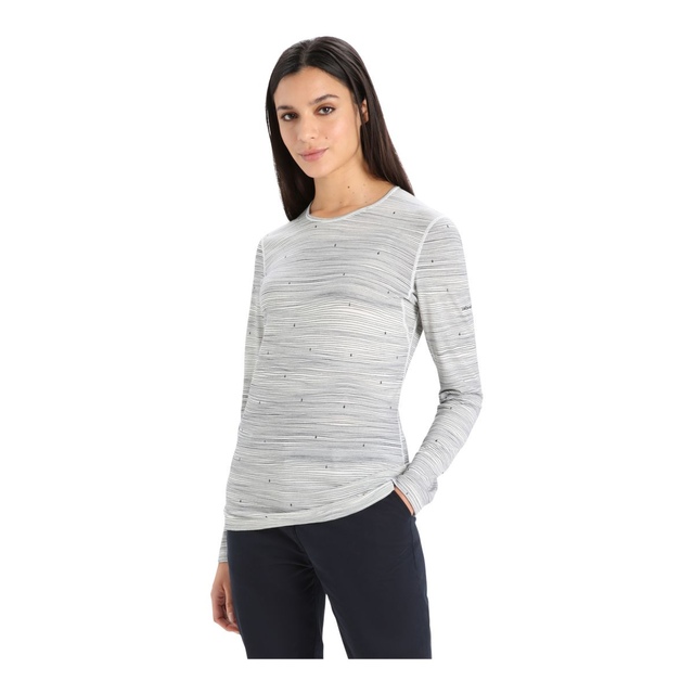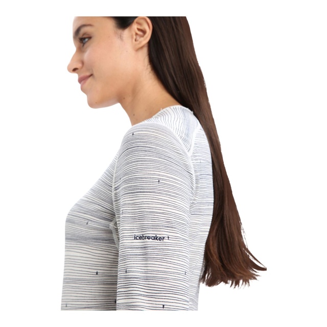 The Icebreaker Women's 200 Oasis Long Sleeve Crewe Top regulates the body temperature for comfort during intense activities in winter. The flatlock seams reduce skin irritation due to friction, while the gusseted arms increase mobility. The artistic imprint of ski tracks adds a unique look. The natural and biodegradable merino wool fibre makes this long-sleeved crew top sustainable.