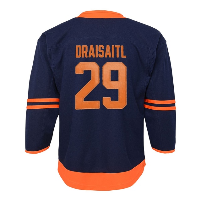 Stand out from the crowd in the Infant Edmonton Oilers Leon Draisaitl 3rd Jersey. Bold in design and fabrication. Complete with Leon Draisaitl #29 name and number. This is a must have jerseys for any young Oilers fan. Officially licensed by the NHL and NHLPA. Toddler 2T to 4T size range.