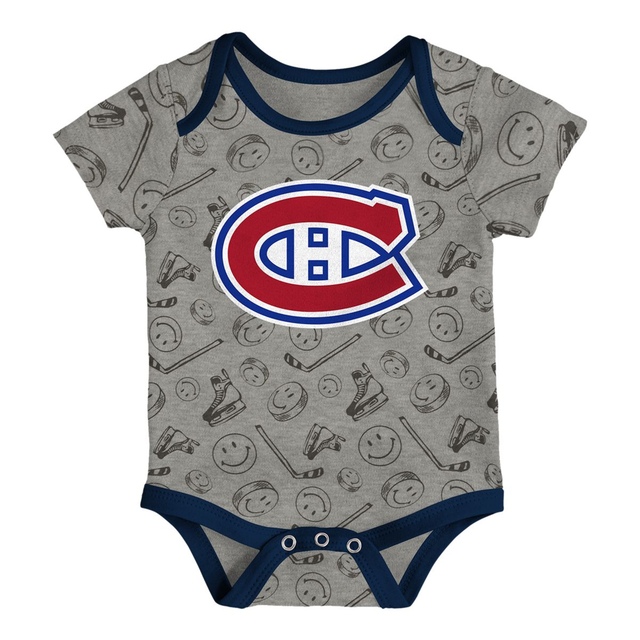 The Full Strength short sleeve three pack creeper set is super fun for any new NHL Fan. Team, alternate, and grey coloured creepers with hockey inspired graphics in their favorite team. Cotton interlock fabric with soft hand screen print application. Officially licensed by the NHL. Infant size range.