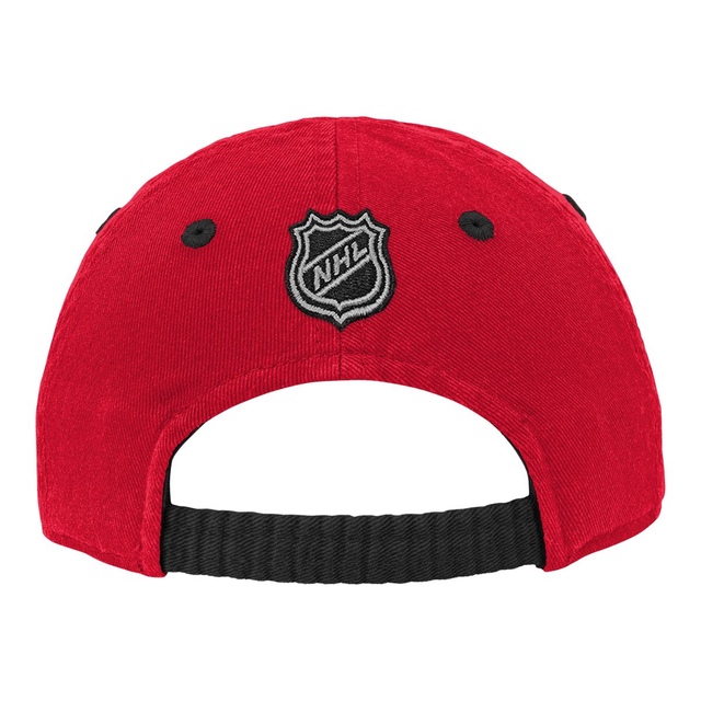 The perfect first NHL cap for every new Ottawa Senators fan. Baby specific design featuring soft cotton relaxed construction, soft foam visor, stretch eleastic closure, and no button on the top for safety. Team and alternate color design with embroidered team logo on front and NHL Shield on back. Infant sizing.