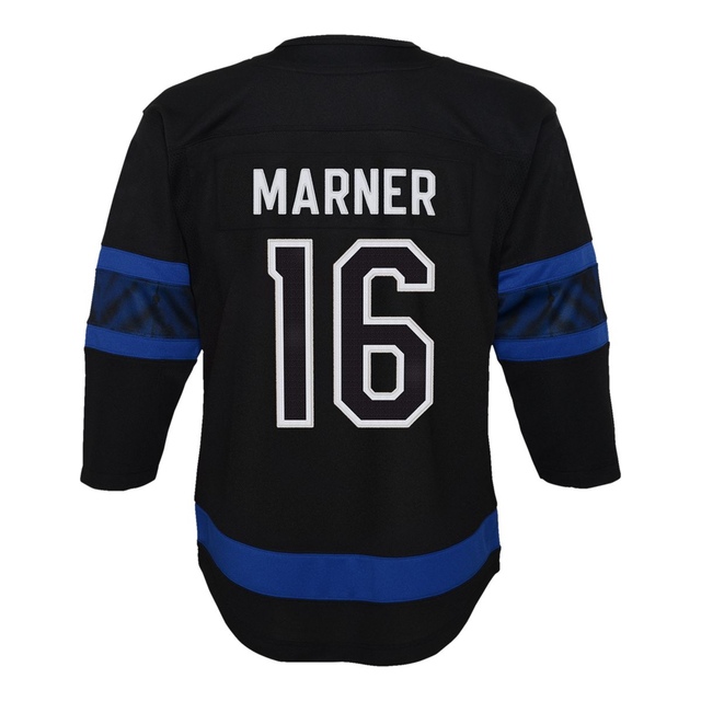 The Toronto Maple Leafs 3rd Alternate jersey, collaborated with Justin Bieber and drew house, provides radical design with reversible features that bring innovation to the NHL jersey. The fashion forward Black and Blue color scheme are youthful with design elements that showcase the Maple Leafs and City of Toronto. Complete with Mitch Marner #16 player name and number. Worn either way, this jersey is great for any young Leafs fan. Infant 12M to 24M size range.