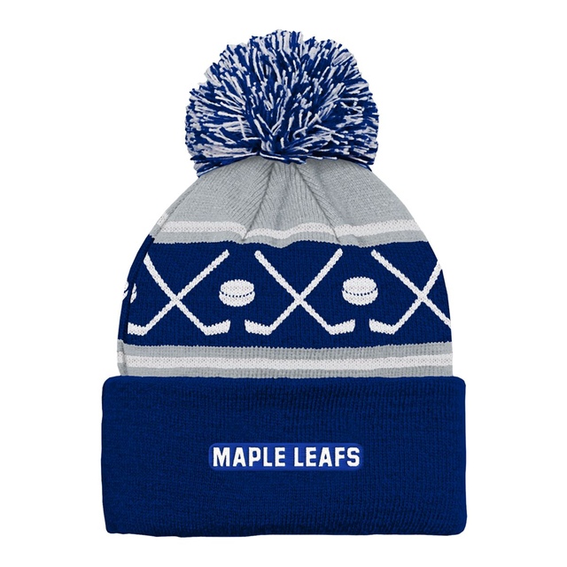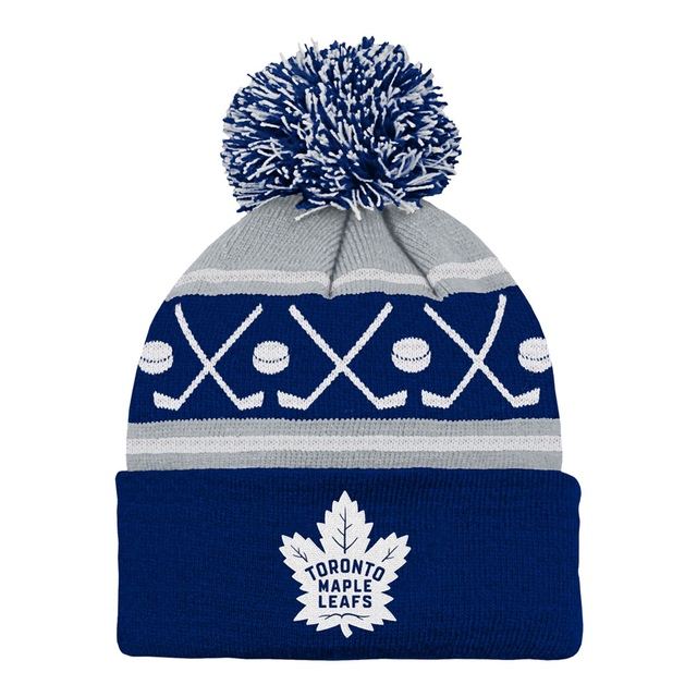The Infant Toronto Maple Leafs Outerstuff Face Off Cuffed Pom Knit Beanie shows off your team pride. Featuring a hockey stick and puck jacquard design, it displays an embroidered team logo on the front and the team name on the back. With team colours and a mixed-colour pom, it adds the perfect finishing touch.