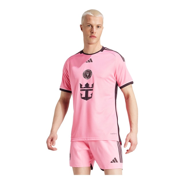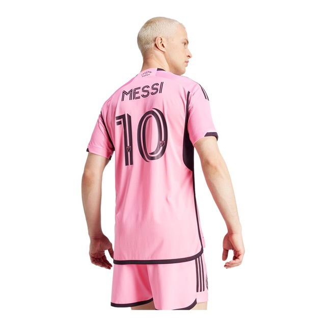 Showing off a new shade for a new season, this Inter Miami CF adidas Lionel Messi Authentic Jersey stands out in the club's signature home colours. Contributing to the clean, classy design, the team badge and 3 Bar Logo move to the center, while Messi's name and number ooze star quality on the back. Behind those superstar looks, AEROREADY manages moisture for fast-moving soccer. This product is made with 100% recycled materials to reflect adidas's commitment to reducing waste.