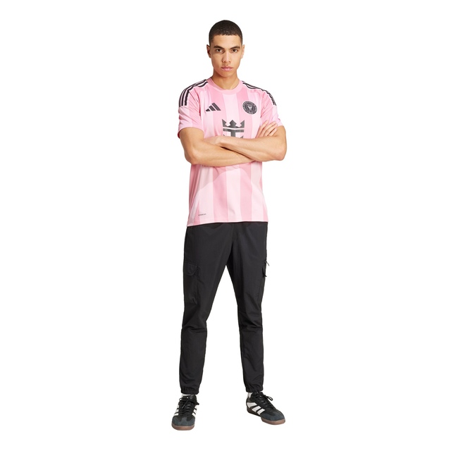 Classic football stripes finished in instantly recognizable Inter Miami CF adidas Messi Replica Jersey. Standing out in two shades of pink, this adidas jersey leaves no doubts about your favourite club. Created for supporters, it has moisture-managing AEROREADY for all-day comfort and a premium woven badge for full-on team pride. That name and number celebrate the club's greatest player. This product is made with 100% recycled materials to showcase adidas's mission to help reduce waste.