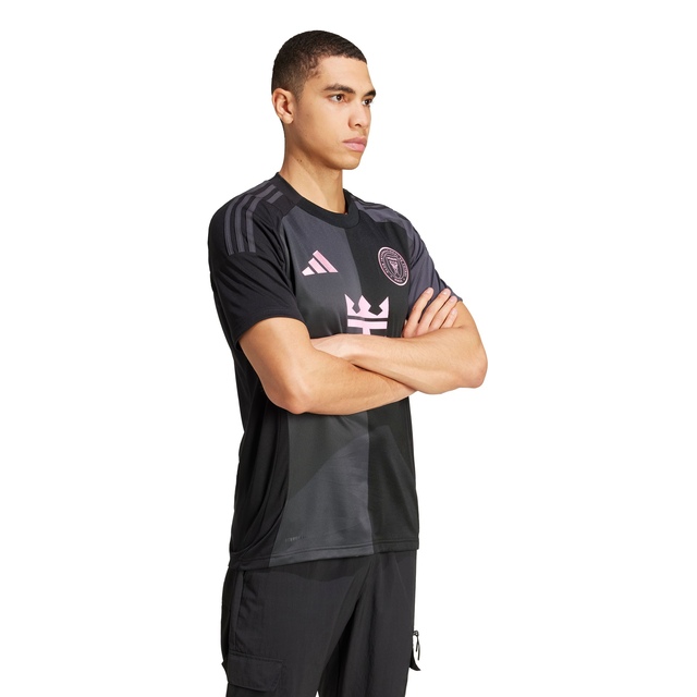 Bring Miami style to the stadium in this elegant Inter Miami CF adidas Messi Replica Jersey. With pink details popping against a black and carbon half-and-half design, this supporter shirt exudes sophistication. Its moisture-managing AEROREADY and soft fabric are there to keep fans comfortable. This product is made with 100% recycled materials to showcase adidas's mission to help reduce waste.