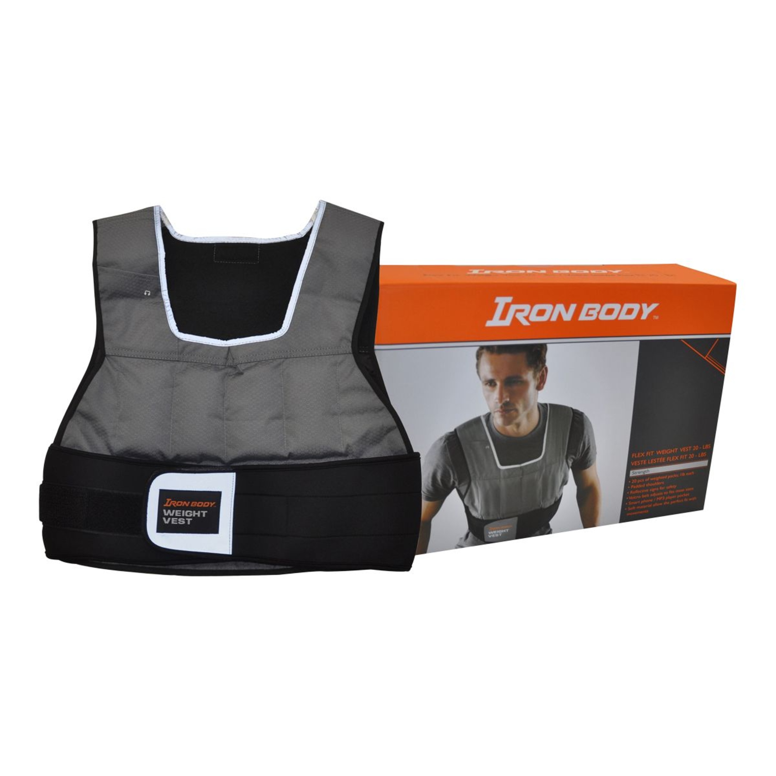 The IBF Iron Body Fitness Flex-Fit 20 lb. (9 kg) weighted vest is ideal for increasing the intensity of any exercise to burn additional calories and build muscle mass
