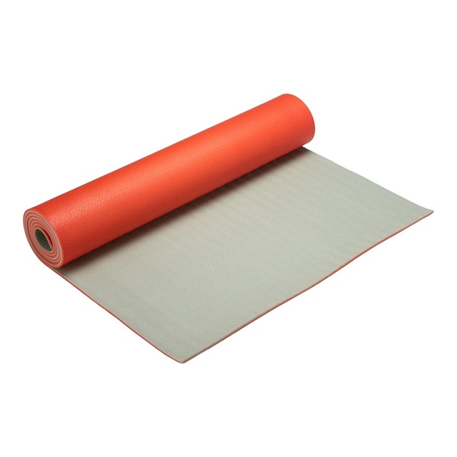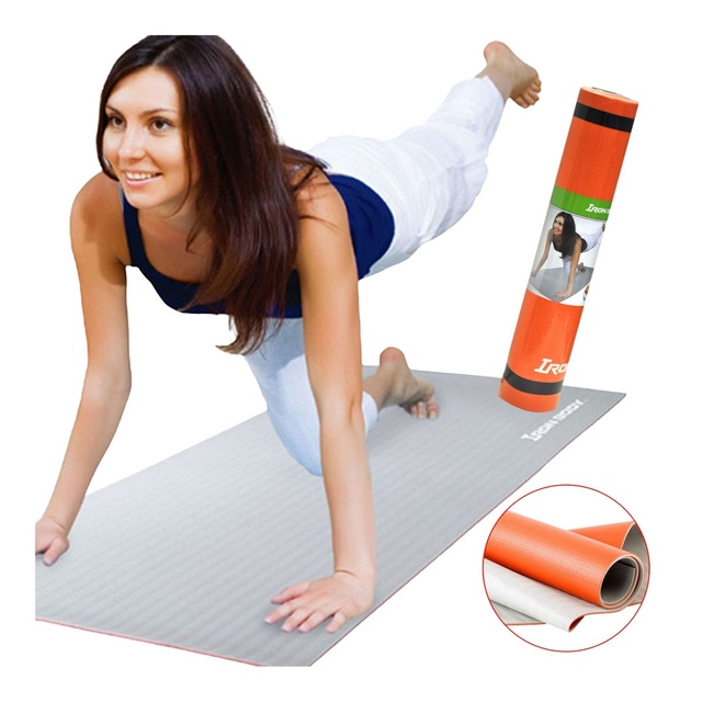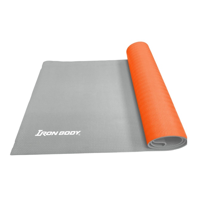 The Iron Body Fitness Two Tone 68" 6mm Yoga Mat. provides excellent support and cushioning for any yoga practice or workout. This orange and grey reversible workout mat is dual-textured, with two different non-slip surfaces to maintain stability while moving through exercises. Great for home or studio use, this yoga mat includes a convenient removable carrying strap.