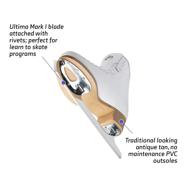 Traditional looking Antique tan colors, no maintenance PVC outsoles with factory sharpened Ultima Mark I stainless steel blade excellent for beginners