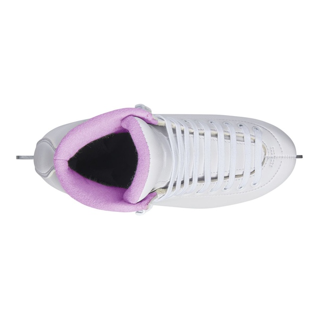 The Jackson 381 Soft Girls' Figure Skates combines the luxury and warmth of traditional white figure skate with superior comfort from first try-on. The stainless steel blade is perfect for beginners. With padded covered tongue and thick soft padded rolled collar, these medium recreational skates offer support, warmth, and comfort. Online only.