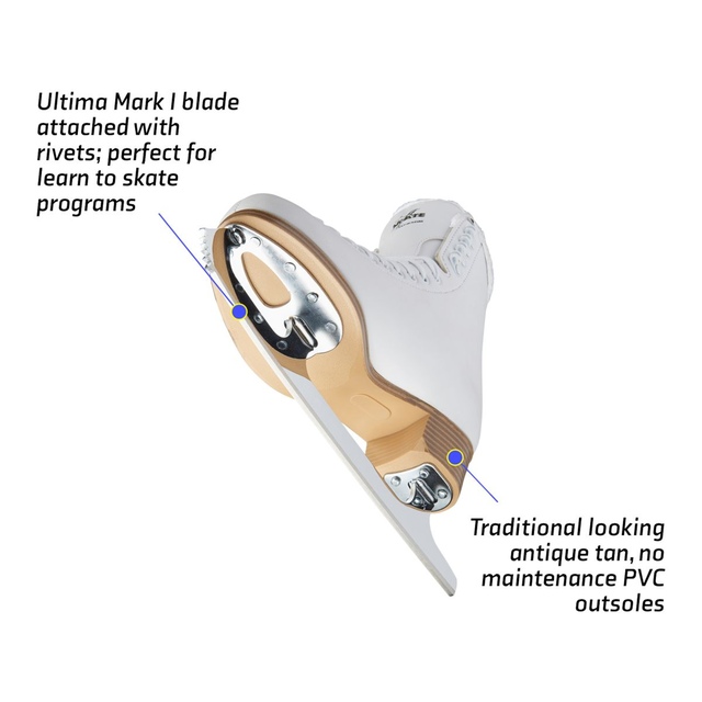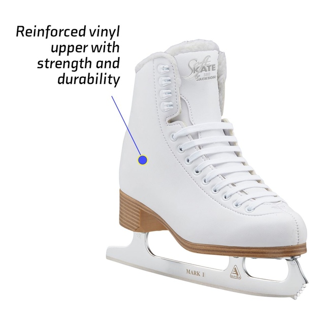 The Jackson Women's 380 Soft Figure Skates combines the luxury and warmth of traditional white figure skate with Superior comfort from first try-on! With tan colours and a sharpened Ultima Mark I stainless steel blade, these figure skates are stylish and perfect for beginners. Online only.