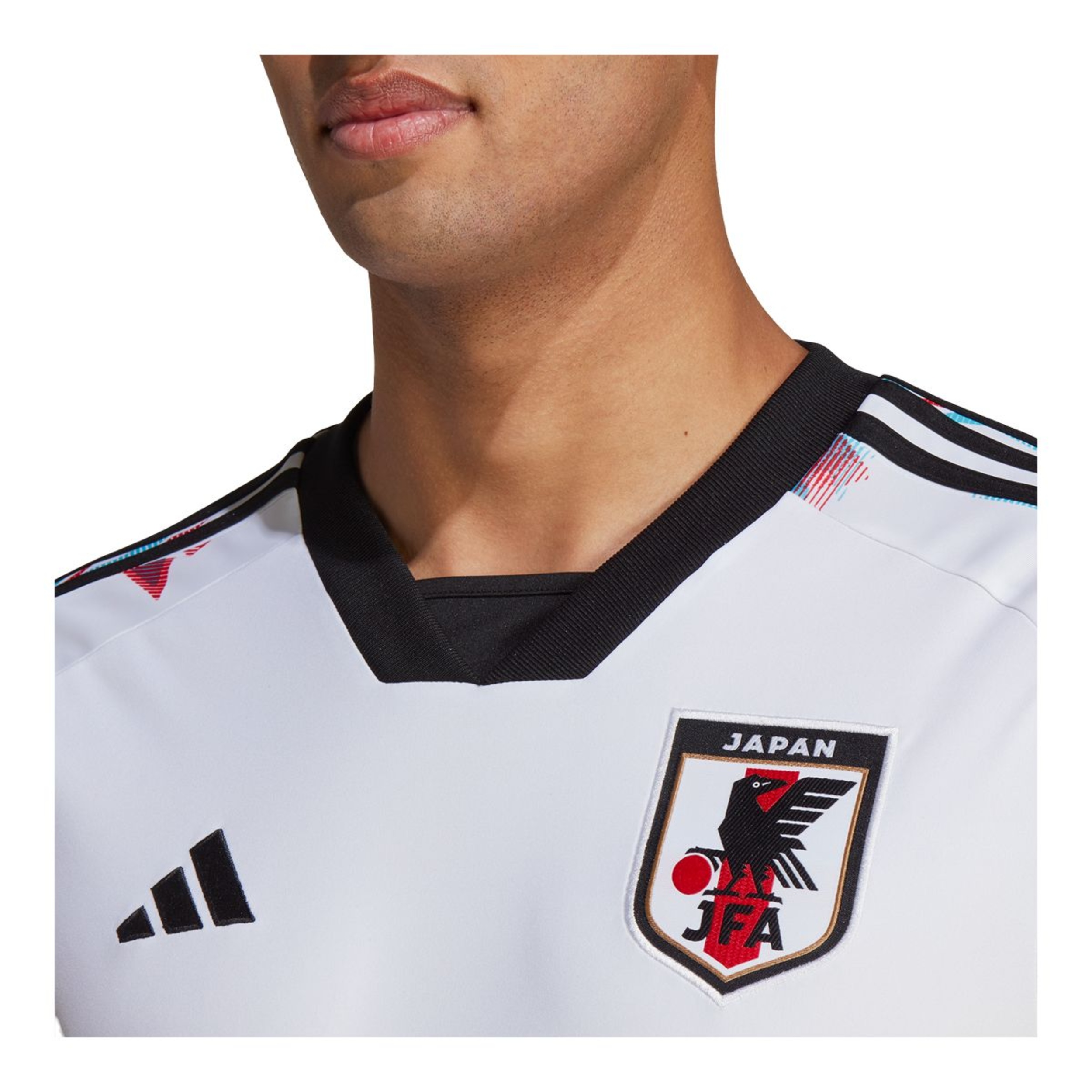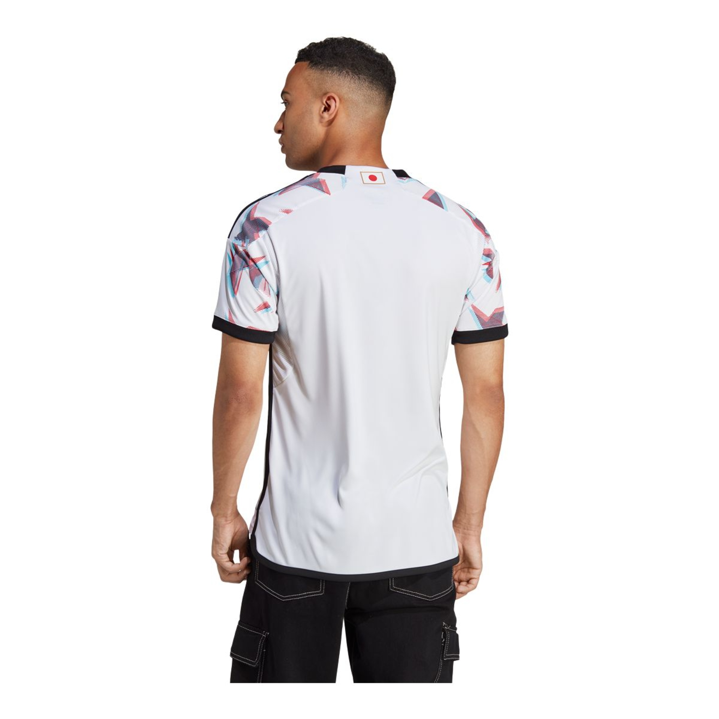 Welcome to the fold. This adidas football jersey takes design cues from origami and adds a speed-inspired twist. AEROREADY helps keep you dry, whether you're suiting up to play or kicking back at home. Show off your love for Japan with the team badge on the chest and the country's flag on the back collar. Made with 100% recycled materials, this product represents just one of our solutions to help end plastic waste.
