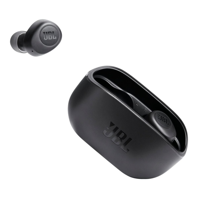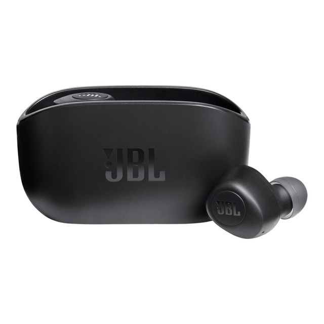 Enjoy high-quality sound everywhere with the JBL Vibe 100 True Wireless In-Ear Headphones. Ergonomically shaped, the eartips in three sizes offer the perfect seal for sound clarity. Easily manage calls and access the voice assistant on a connected device with these true wireless earbuds.