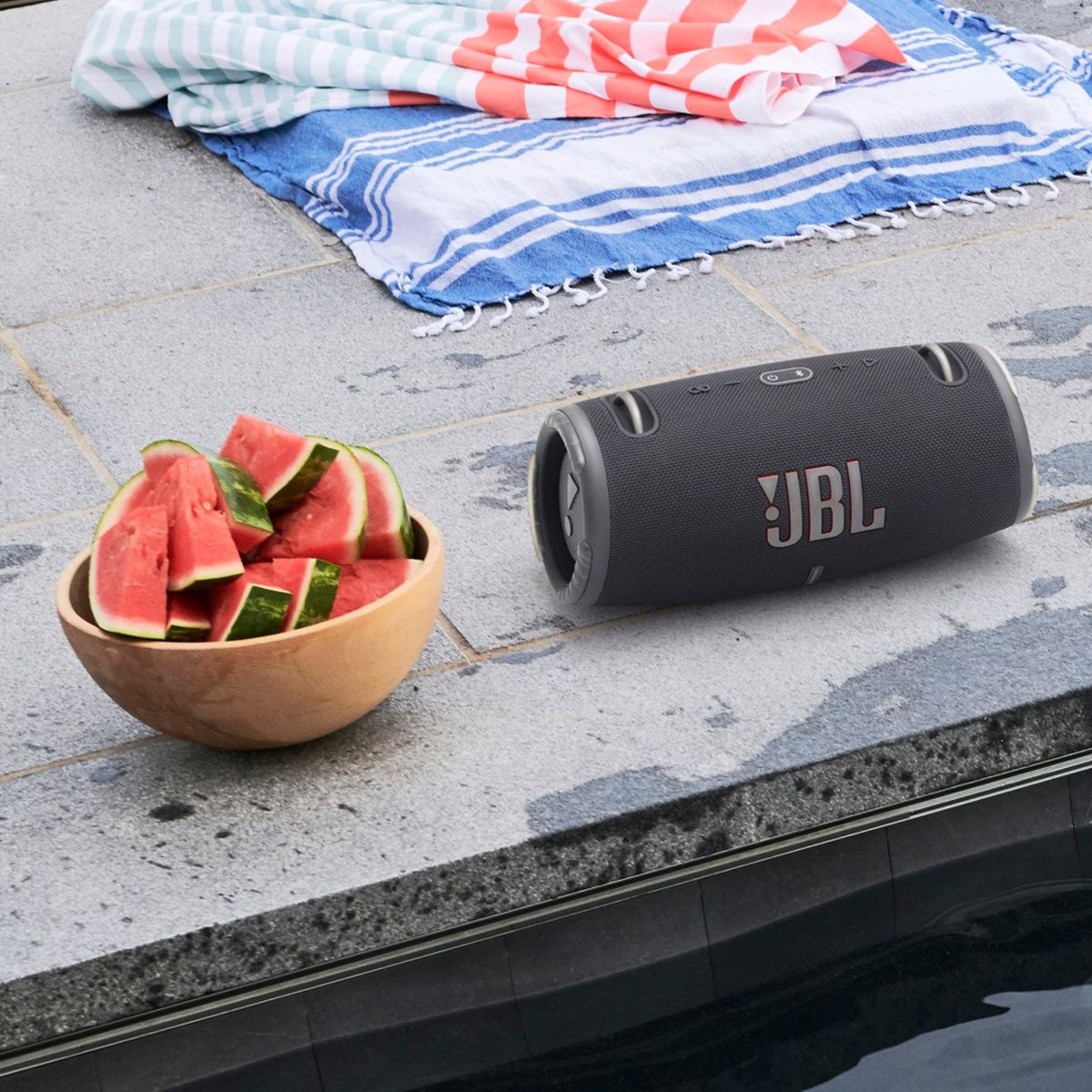 Get powerful audio performance on the JBL Xtreme 3 Portable Bluetooth Speaker. With 4 drivers and 2 bass radiators, it fills any room or outdoor space with a rich, punchy sound. Plus, the strap features a built-in bottle opener on this JBL Bluetooth Speaker making it easy to move the party indoors.