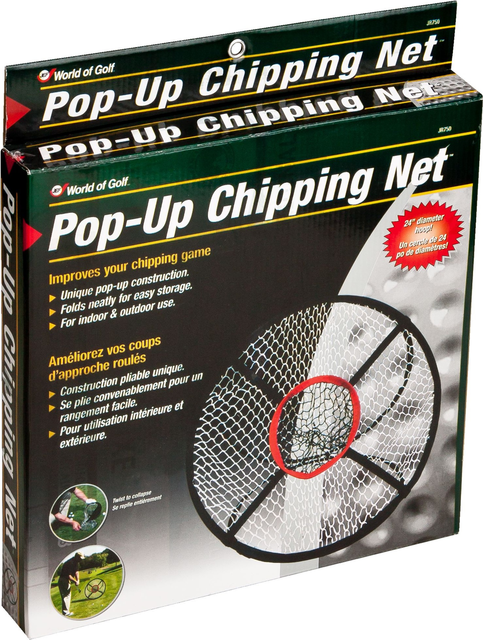Work on your short game indoors or outside with the JEF World of Golf Pop Up Chipping Net. Designed to help golfers improve accuracy around the green, this chipping net features three clearly defined target zones for precision practice. When you're finished, the fold and clip design proves to be less hassle than twist style pop-up nets.