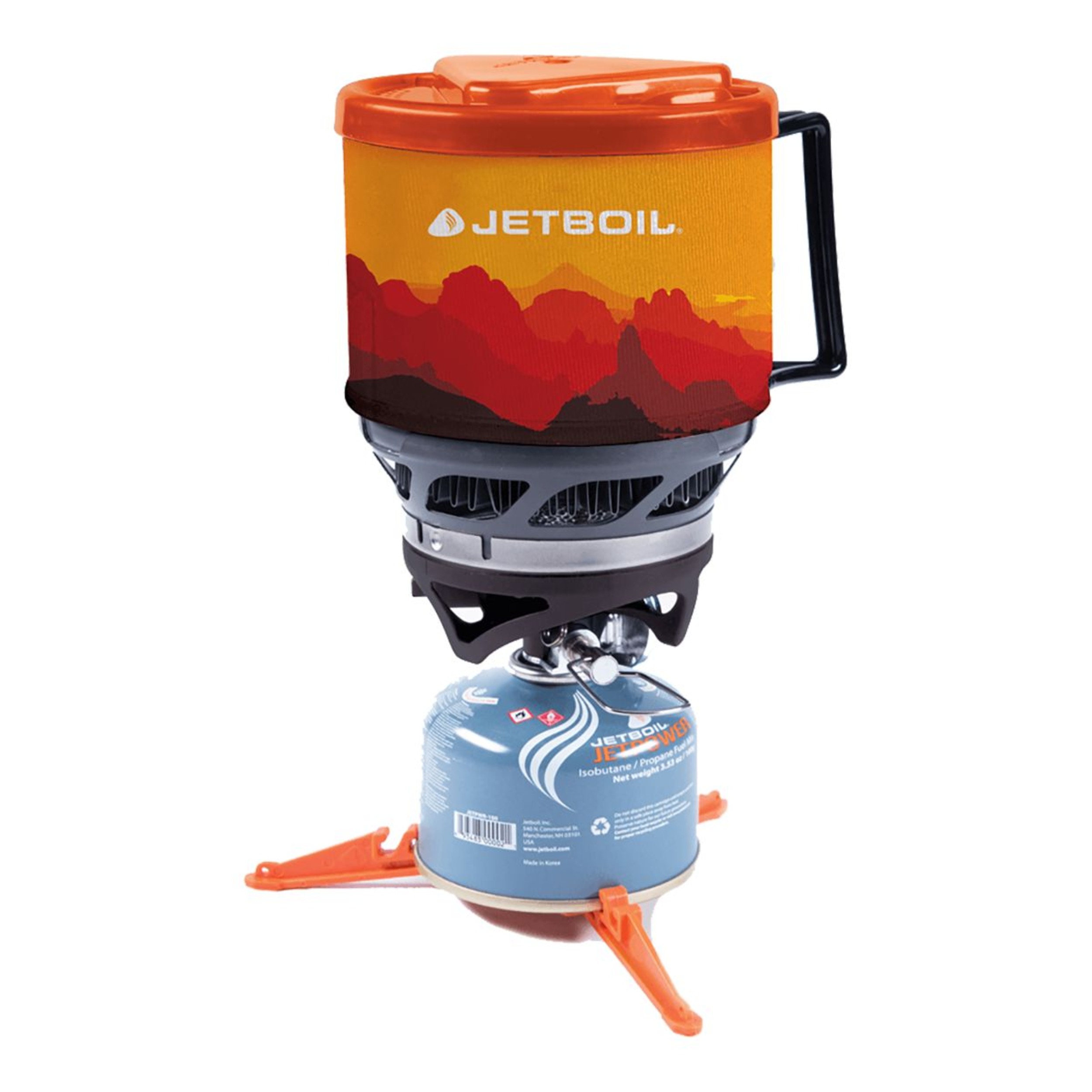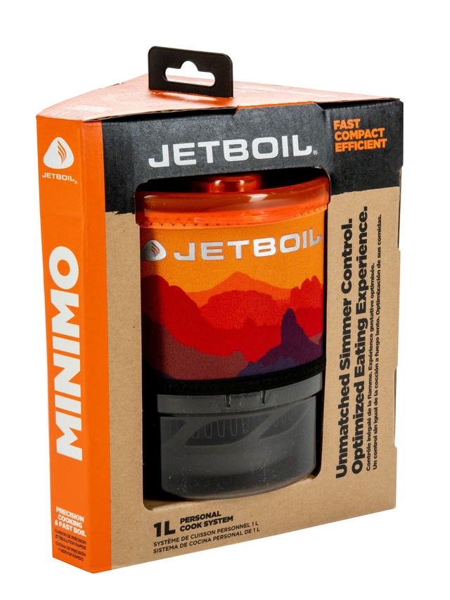 The convenient Jetboil MiniMo Cooking System features a 1 L FluxRing cooking cup with a Sunset design for easy eating. Its metal handles ensure secure handling, while adjustable heat control and a reliable push-button igniter allow for precision cooking. This handy Jetboil MiniMo also includes a dual-purpose bottom cover and fuel canister stabilizer for hassle-free use.
