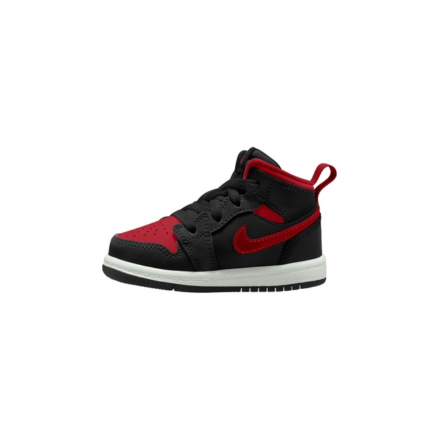 The Jordan 1 Toddler Kids' Mid Sneakers pays homage to an iconic sneaker while keeping little feet happy. This pint-sized version of the legendary Air Jordan 1 brings big-kid cool to the playground. A mid-top cut serves up grown-up flair with a dash of extra ankle support. Crafted from premium materials, these kicks can keep pace with their most rambunctious wearers.