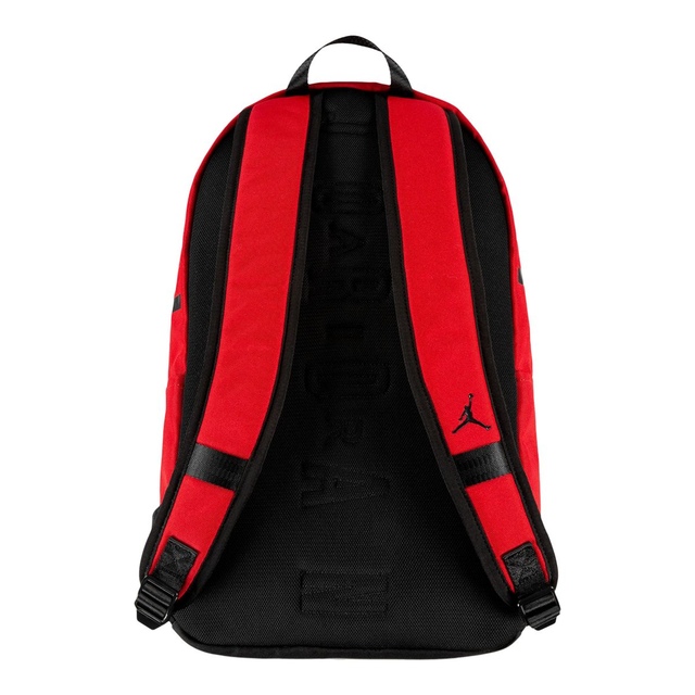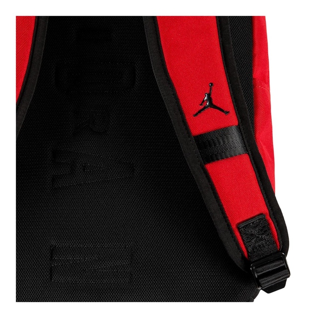 Super durable backpack with a front organizer pocket with zip closure, 2 side pockets, laptop sleeve and adjustable shoulder straps. Finished with a Jordan logo at the front. Dimensions: 19.5"H x 12"W x 7"D