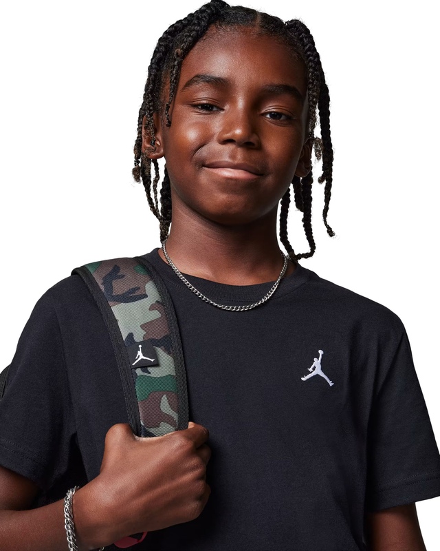 Elevate their athletic style with the Jordan Boys' Jumpman Air Embroidered T Shirt. Made from ultra-soft jersey fabric, this tee features a ribbed neckline and short sleeves for a classic fit. The embroidered Jumpman Air logo adds an iconic touch.