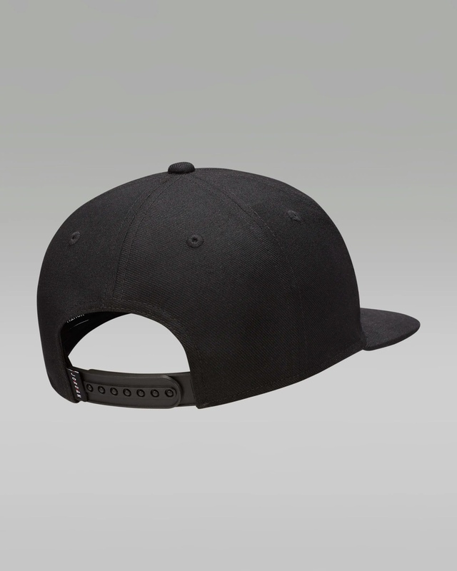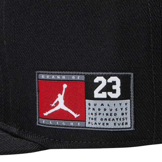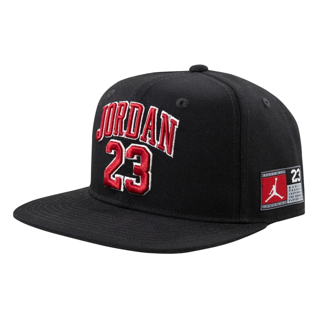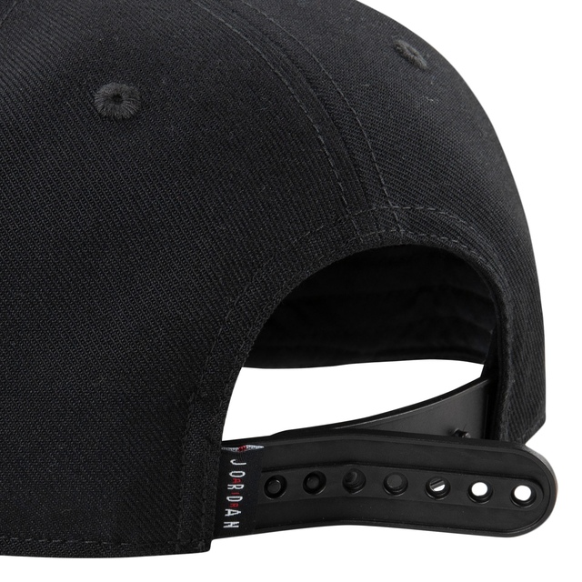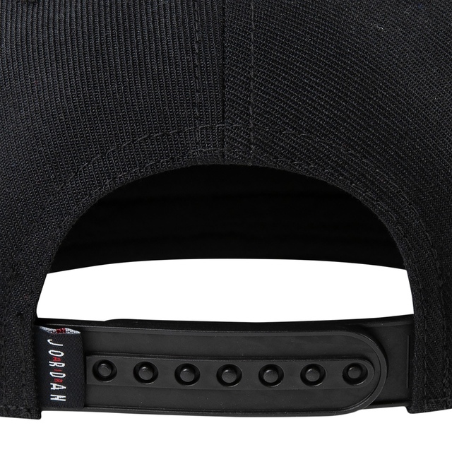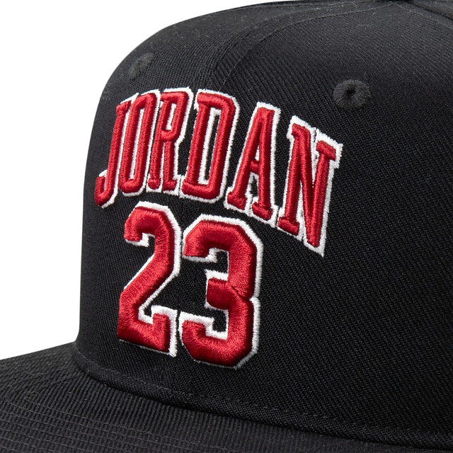 This cap by Jordan is made of woven poly twill fabric in the classic 6-panel construction and features basketball jersey style text embroidered on the front. The flat brim helps shield your eyes from the sun, the built-in sweatband helps keep your head cool and dry and the adjustable snapback closure helps you get a fit that's just right.