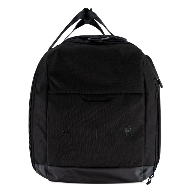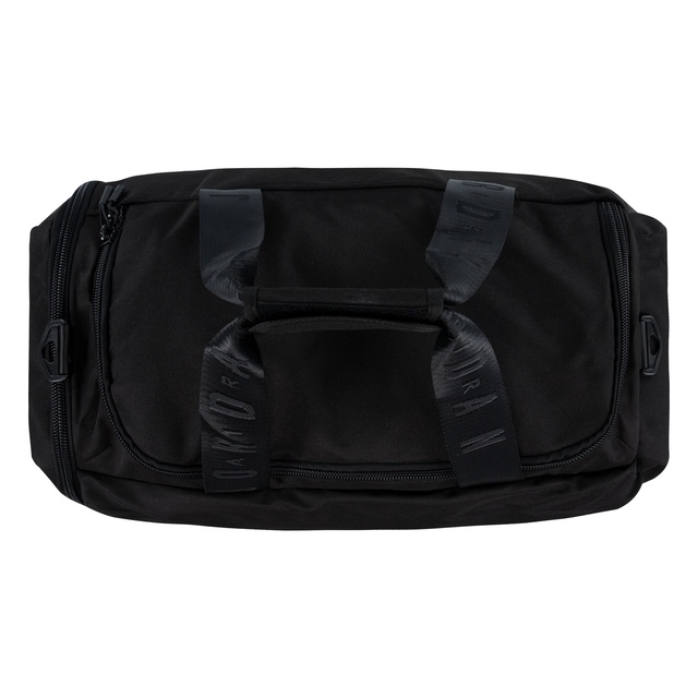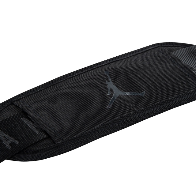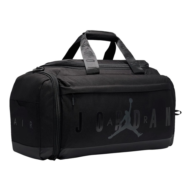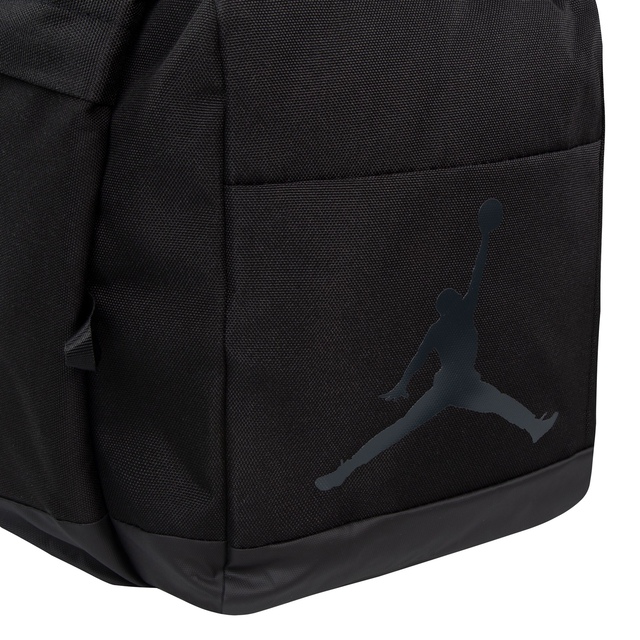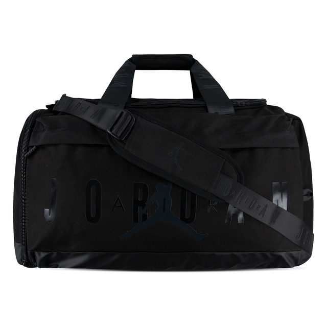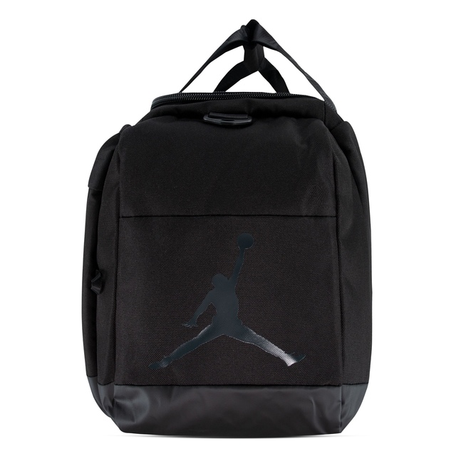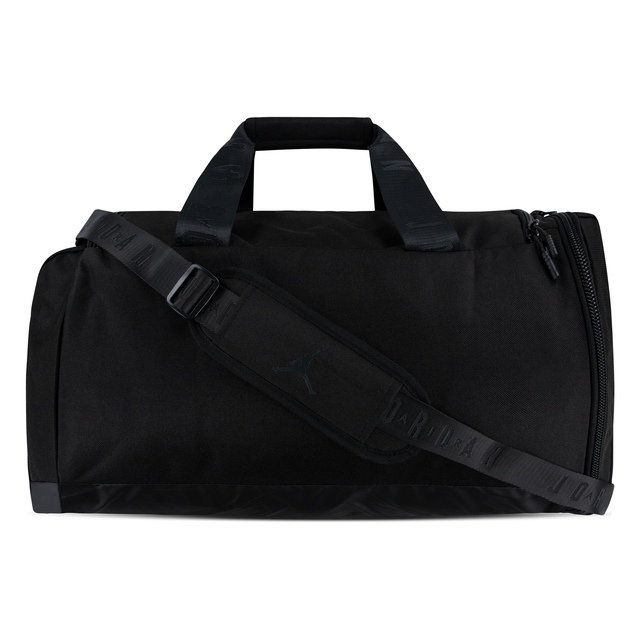 Made of durable polyester fabric and featuring Jordan logos on the front and sides, this spacious duffle makes it easy to pack what you need to hit the gym, the court, the field or an overnight trip. The spacious main compartment has a zip closure and houses a zippered mesh pocket to secure smaller items you don't want lost in the shuffle, a smaller zippered compartment on the front houses an organizational pocket and the shoe garage on the side can be used to separate sport shoes or soiled clothing from the contents in the main compartment. The handles have a panel with hook-and-loop closures for easy carry and the adjustable, detachable strap with shoulder pad provides comfortable wear. Features include: 900D Polyester. Zippered main compartment. Inner mesh zip pocket. Large front zippered pocket. Lined shoe garage at side. 2 handles. Panel with hook-and-loop closures. Adjustable, removable strap with shoulder pad. 11.75"H x 25"L x 12.5"D; Strap length: 51" (longest), 31.74" (shortest)