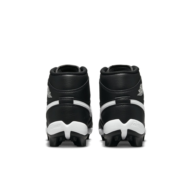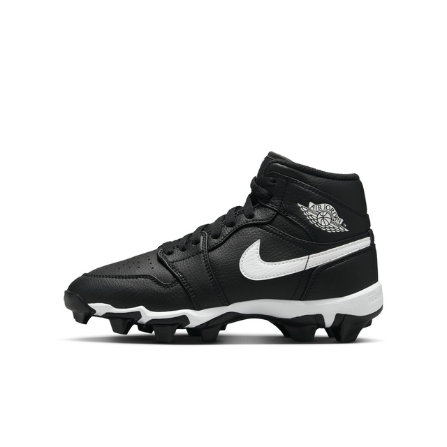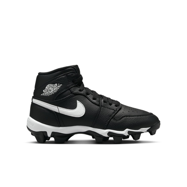 The Jordan Kids' 1 Mid Football Cleats seamlessly blend iconic Air Jordan style with superior on-field performance. These traction cleats boast a durable synthetic leather upper inspired by the legendary Air Jordan 1 silhouette. The strategic wide stud placement allows for lightning-quick cuts and turns, while the external pods deliver unbeatable traction for pivots.