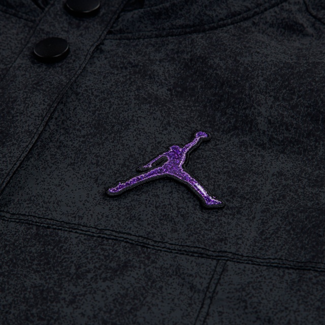 The Jordan Kids' Blue Jeans And Bling Lightweight Jacket is an ideal choice for fall and spring. Crafted from woven nylon, this jacket offers a roomy fit with a full-snap closure for easy layering. The cropped design and dropped shoulders provide a modern yet retro vibe.