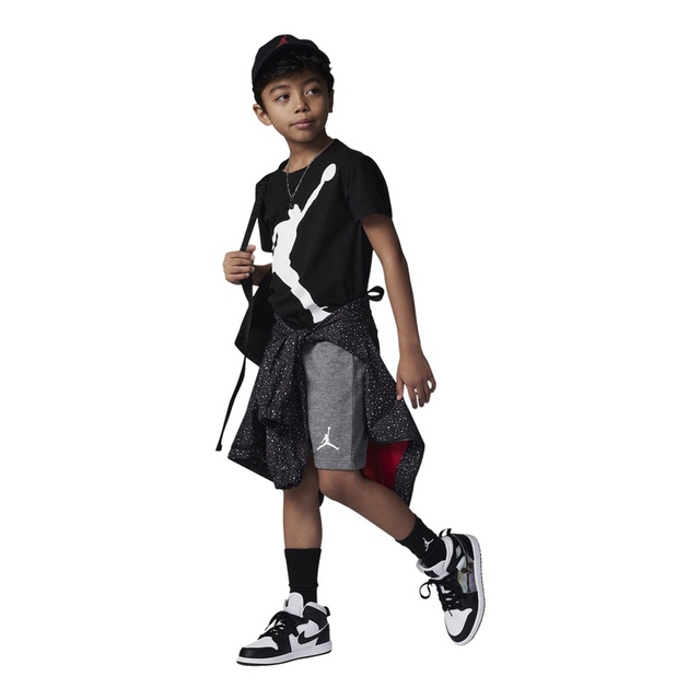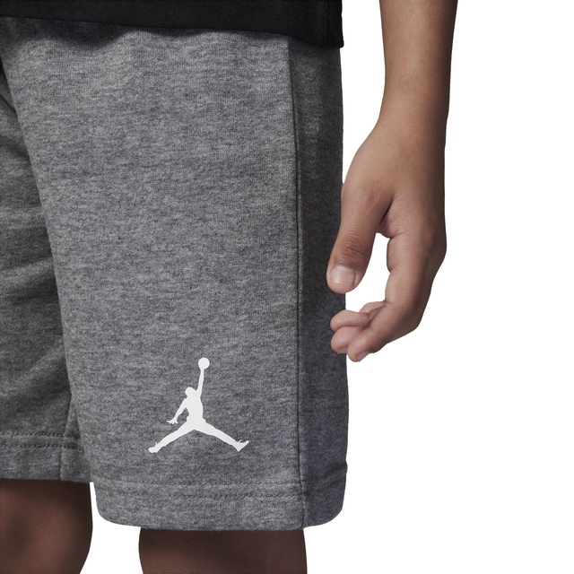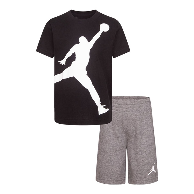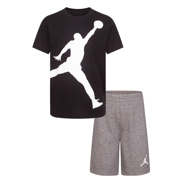 The Jordan Kids' Jumpman Shorts Set is a stylish, coordinated two-piece outfit for your little baller. The tee showcases a jumbo Jumpman logo, while the matching French terry shorts offer a comfy fit with an elastic waistband. Designed for comfort and style, this set keeps kids looking cool and feeling great all day long.