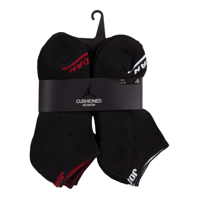 Help enhance their comfort and style with the Jordan Kids' Legend No Show Socks. This 6-pack of socks offers ankle-length coverage, mesh top panels for breathability and distinctive Jordan graphics. With added cushioning from toes to heels and snug support through rib-knit ankle cuffs, these Jordan socks are ideal for daily wear and athletic activities.